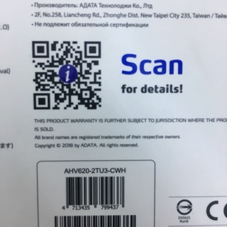 除了那張貼紙之外, 這外包裝跟去年買的幾乎一樣, 條碼也是完全一樣, 因為尺寸那部份看不清楚, 如果高度是 21mm, 那內裝硬碟應該很有可能也是 Toshiba 的 MQ03ABB200M 2TB PMR |