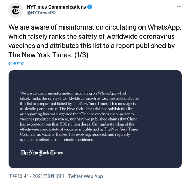 Ô£¼w°ê¤§Án¥X¥]¡H §A¦³ÂI¶i³sµ²¸Ì±¬Ý¶Ü¡H ¡]¤@¡^¬d®Ö¤¤¤ß³z¹LÃöÁä¦r·j´M¡A§ä¨ì¡m¼w°ê¤§Án¡nµo¥¬©ó2020¦~10¤ë7¤éªº³ø¾É¡A¼ÐÃD¬°¡q¥þ²y10个³Ì领¥ýªº·s«a¬Ì]项¥Ø¡r¡C³o½g³ø¾É«ü¥X¡G¡u¦b¥þ²y10´Ú¶i¤J3´Á·s«a¬Ì]¸ÕÅç·í¤¤¡A¦³4´Ú¨Ó¦Û¤¤°ê¡C¡v³ø¾É¤¤¤¶²Ð³o10´Ú¬Ì]ªº¶¶§Ç¡A§Y»Pºô¶Ç°T®§ªº±Æ§Ç¬Û²Å¡C ¬d®Ö¤¤¤ßÀ˵ø¡m¼w°ê¤§Án¡nì©l³ø¾É¡A±Æ¦W¶¶§Ç¨Ã¤£¬O¡u¦w¥þ©Ê¡v±Æ¦W¡A¦Ó¶È¬°¤¶²Ð¶¶§Ç¡C ¡]¤G¡^¬d®Ö¤¤¤ß¤À§O¥HÃöÁä¦r¡u·s«a¬Ì] ¦w¥þ ±Æ¦W¡v»P¡ucovid19 vaccine security ranking¡v¡A·j´M¡m¼w°ê¤§Án¡nºô°ì¦b¹L¥h¥b¦~¤ºªº³ø¾É¡A¨S¦³¬Ý¨ì¶Ç¨¥«ÅºÙªº±Æ¦W¡C ºî¦X¥H¤W¡Aºô¶Ç°T®§ºÙªº¡u·s«a¬Ì]¦w¥þ©Ê±Æ¦W¡v¡A¹ê»Ú¤W¬°¡m¼w°ê¤§Án¡n³ø¾É¤¤¤¶²Ð·s«a¬Ì]¬Ì]ªº¡u¤¶²Ð¶¶§Ç¡v¡A¦Ó¡m¼w°ê¤§Án¡n¨Ã¨S¦³·s«a¬Ì]¦w¥þ©Ê±Æ¦Wªº¬ÛÃö³ø¾É¡C ª§Ä³ÂI¤G¡Bºô¶Ç°T®§ªþ¤Wªº¹Ïªí¥X³B¬°¦ó¡H ¬d®Ö¤¤¤ß³z¹L¥H¹Ï¤Ï·j¨Ã¡A¨Ã·f°tÃöÁä¦r·j´M¡A§ä¨ì¥Zµn©ó»´ä´CÅé¡m¸gÀÙ³q¡nªº§ë®Ñ¡C³o½g§ë®Ñªº¼ÐÃD¬°¡q¬Ì]ÁÙ¬On¥´¡r¡A§ë®Ñ©Òªþ¤Wªº¹Ïªí¡A»Pºô¶Ç¹Ïªí¬Û¦P¡C¦¹½gŪªÌ§ë®Ñ¤Þz¹Ïªíªºì©l¥X³B¬°»´äÂå°|Ãľ¯®v¾Ç·|¡C¦¹±i¹Ïªí»P¬Ì]¦w¥þ©Ê±Æ¦WµLÃö¡C |