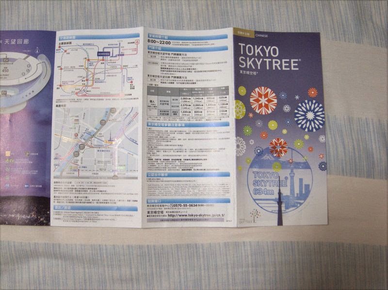 繁體中文的天空樹簡介。跟櫃台購票時,櫃台會詢問需要哪種語言的簡介,中文有分繁簡版。封面有去蓋章,在下來的時候,有一個小櫃台有天空樹的章可以蓋,當作到此一遊的紀念,沒想到只有少少幾個人在那邊蓋。總之,我就去蓋了個章。