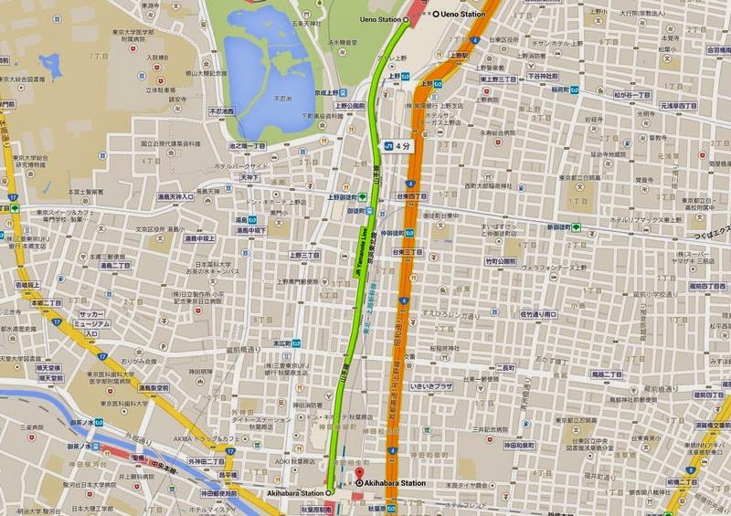 從上野到秋葉原只要搭山手線坐個兩站就到了。