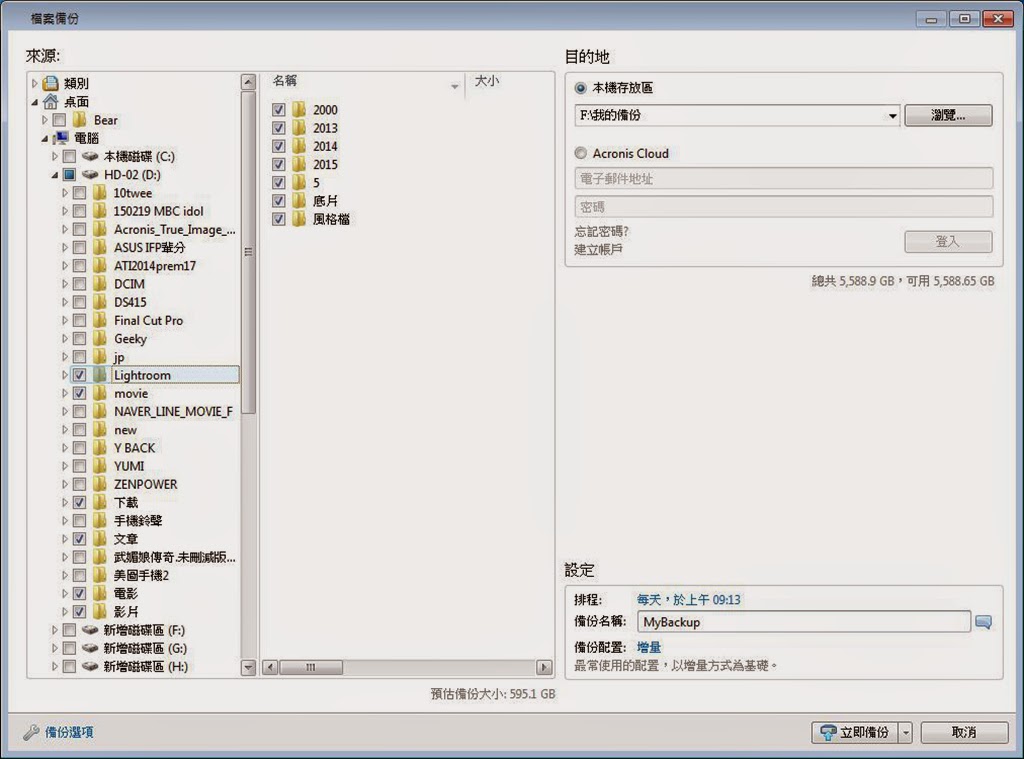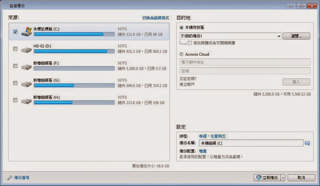 今天也會一併分享我自己使用 Acronis True Image 這套軟體幫自己的資料備份方式,透過軟體的設定自動化備份,減少自己懶惰忘記備份的漏洞,果然還是機器可靠些(其實只是自己懶的每次都去複製一次)。