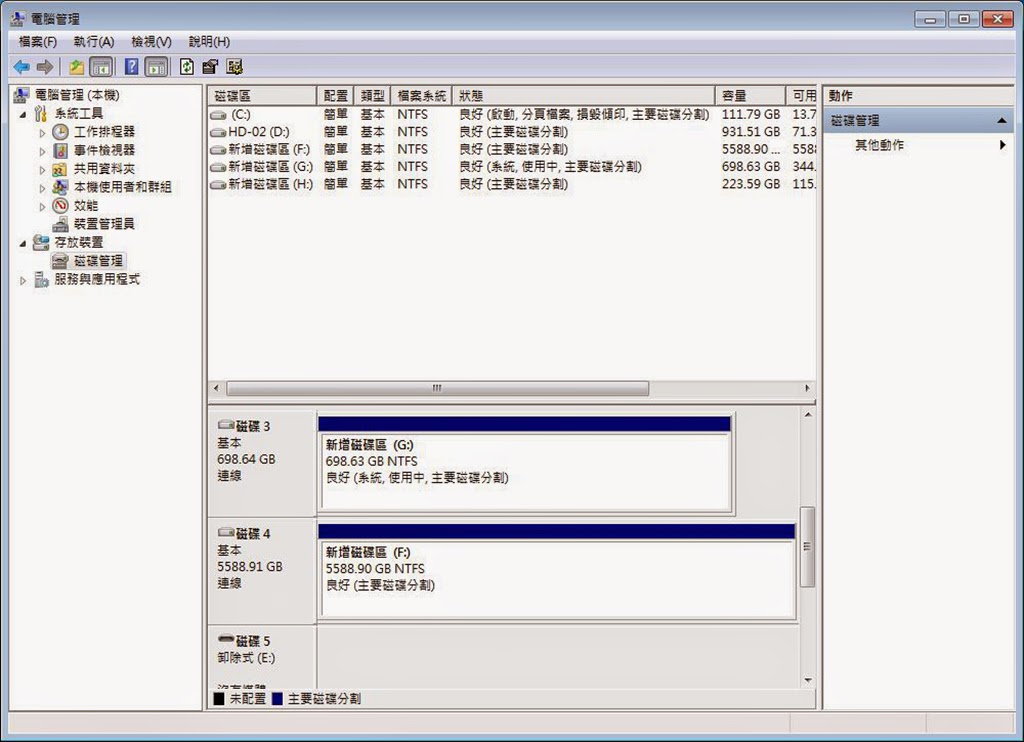 這是我目前使用的硬碟空間狀況,另外雖然標榜6TB因為電腦算法方式,實際上就是5.45TB的容量可以使用。