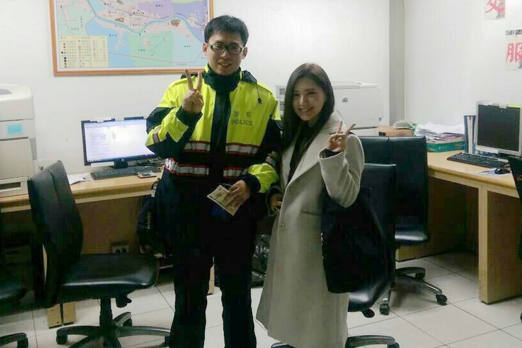 上瞬間綻放一抹超甜美笑容,並感謝員警熱心幫忙,還主動要求與周員