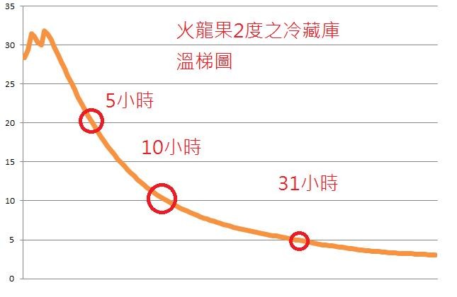 夏季火龍果採收後,放進冷藏庫之後的溫梯變化。(作者製圖)