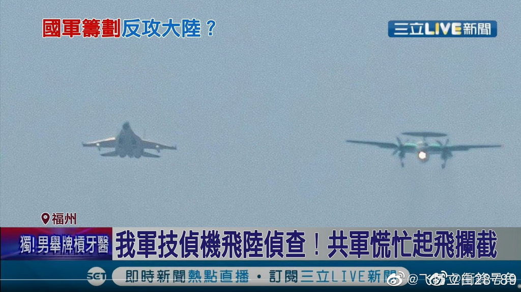 我軍技偵機飛陸偵查!共軍慌忙起飛攔截