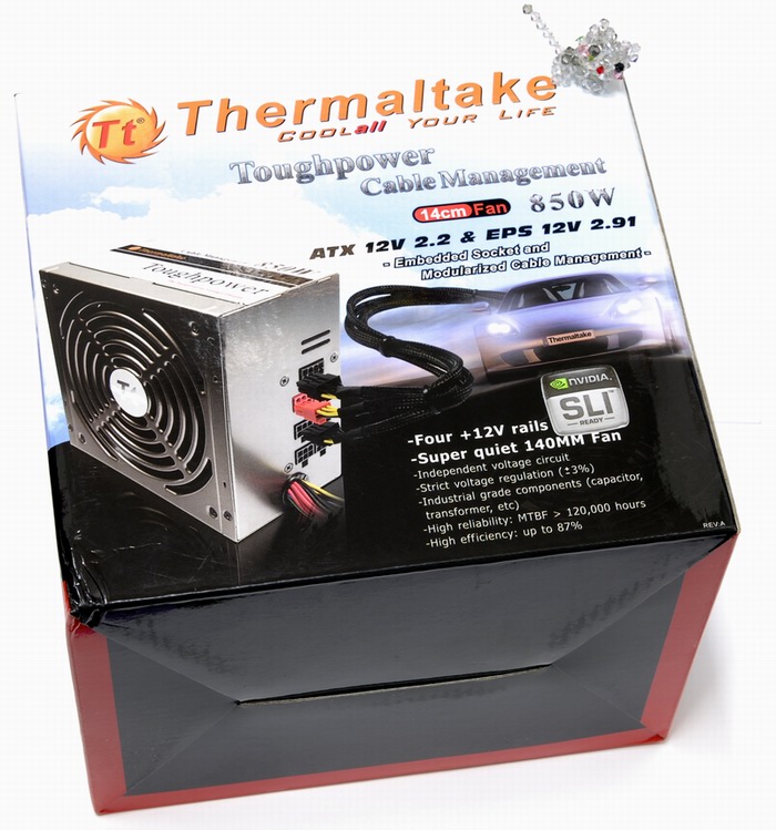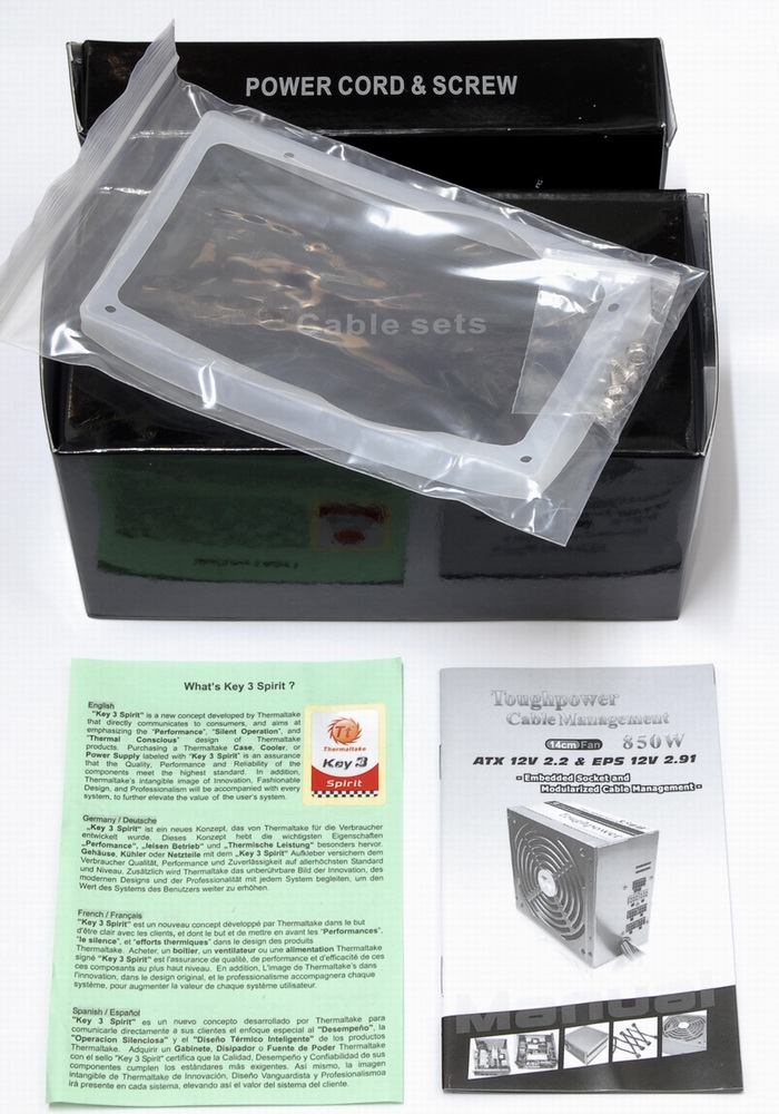 加上中高階顯示卡耗電量越來越高,甚至相繼出現需要雙供電的產品 高瓦數與主動PFC的PSU將扮演更重要的角色 Thermaltake除了在散熱配備領域有出色的表現外 也推出了一系列的PSU產品, 一般規格為Toughpower系列 以有無模組化區別分成兩類,其中最高階產品最高達到1200W 此次的主角-Thermaltake Toughpower 850W 支援到ATX 12V 2.2與EPS 12V 2.91最新規格 外包裝相當的厚實 ![]() 內附配件 說明書.電源線材與模組化線材包 ![]() 可擴充的線材一覽 ![]() PSU本體,金屬色質感 ![]() 850W規格表 +12V共有四個,最高共62A(744W) ![]() 模組化接頭 有貼紙詳細說明 ![]() 散熱風扇使用14cm ![]() 內部用料 ![]() ![]() ![]() ![]() ![]() ![]()