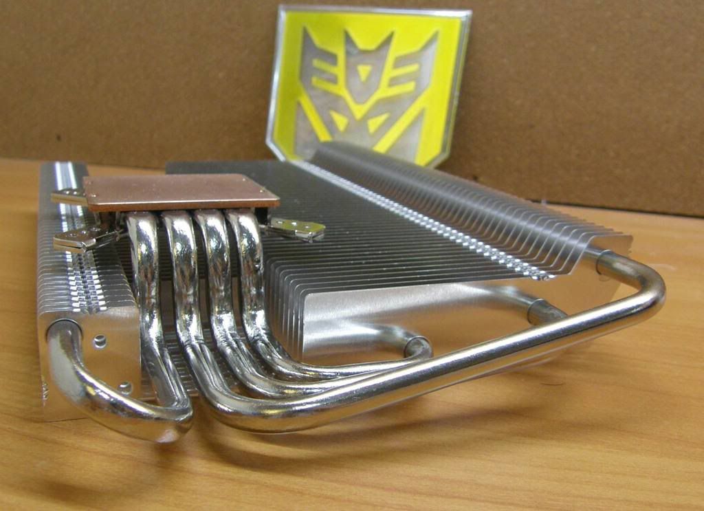 不過有些人手邊應該都還有些舊的卡 像我手上就有張 X1900XT (CF板) 不過這幾天也入手了 4850 系列.... 因此挑一個通用~而且質感和效果不俗的散熱器變得很重要 之前忍了很久等 AC 雙渦輪系列推出~ 結果要價 1500 效果只能說普通..後來看到一堆板友的分享.. 決定弄一塊排骨來吃~~~Fridge JES998 ( 原廠網頁 http://www.auras.com.tw/ppdtView.asp?nid=231 ) 大家看圖囉 ![]() 這東西質感挺不賴的...熱導管加工的功夫一流~~ ![]() ![]() 熱導管總數4根~平均總長度起碼超過30公分(含彎曲部分) ![]() X1900-CF著裝完成~裝上超靜音高爾夫扇.. ![]() ![]() 上機了~ 裝上後真的是好大一片..霸氣十足... ![]() ![]() 測試結果如下(機殼有蓋上側板進行測試)... (3DMark06中途停止回到桌面觀察溫度) 原廠待機---- ![]() 原廠燒機---- ![]() 排骨JES998待機 ![]() 排骨JES998燒機 ![]() 效果真的挺棒的...對溫度的壓制力很強.. 難怪撼訊會用這一款來做為無風扇靜音系列的專屬散熱器... 我想這款唯一缺點大概就是安裝時要多費一點功夫囉... 謝謝觀賞~~~ ![]()