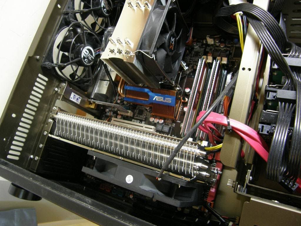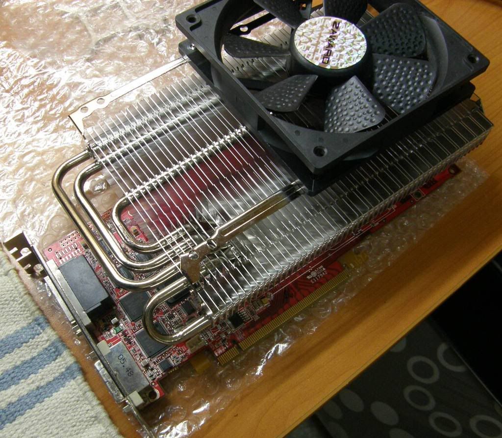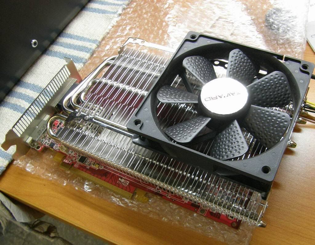~可能要等一下~ 因為那張X1900售出了 現在要改裝上 X1800XL 那張卡..所以請稍待~~~ 1.這款裝 12CM 風扇只能裝一顆...不過孔位可以裝兩顆八公分扇.. 2.這張可以裝上4870~官方網站有公布....只是供電模組一定要注意貼上散熱片...
