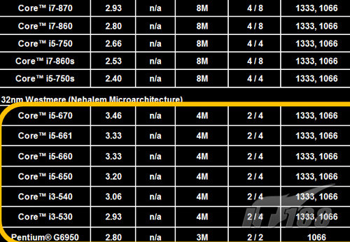 Intel 處理器 45nm/32nm 更新計畫 Core i5/i3/Pentium