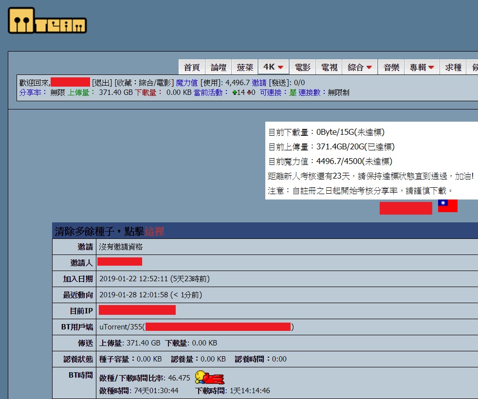 上禮拜二(1/22)才在本論壇由熱心網友發送的M-TEAM邀請碼,也要過關了 ↓發文連結在此 引用: