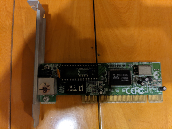 也順道清光20片左右的PCI bus 單port 10/100 網卡 .... 樓上的網卡似乎不是PCI bus ... 好像是 ISA bus .... 更古早以前的東西了!! ![]()
