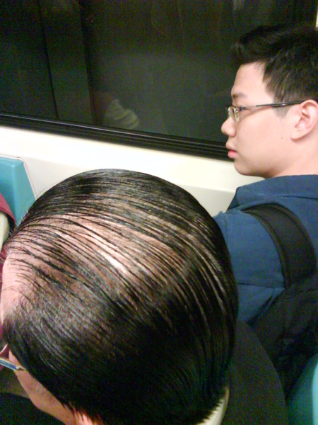 這個髮型怎麼看怎麼怪 ? 是掩飾禿頭的新創意髮型嗎 ?