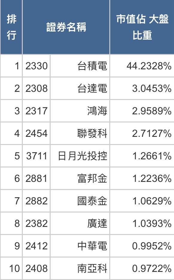 然後轉發了一篇文給我... 【南亞科成為台灣首家市值破兆元的記憶體公司,擠身台灣上市公司市值前十大】 南亞科2026年1月30日收盤價326.5元,以股本309億股本計算,市值首次破兆, 更成為台灣記憶體產業有史以來,第一家市值破兆元的記憶體企業, 擠身台灣上市公司前十大市值公司 文章還附了一張圖... 但我覺得重點其實應該是臺積電44%, 真的是斷崖式遙遙領先第二名臺達電的3% ![]()