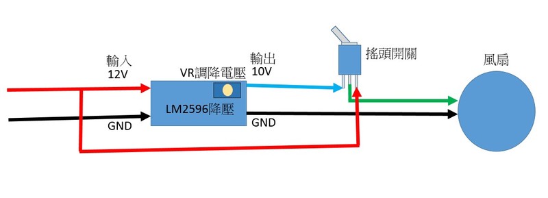 若是啟動後,將電壓調低就可以降低轉速了. LM2596可調降壓模組25元,弄個搖頭開關3元,啟動時用12V, 運轉後切到LM2596的輸出10V左右.就可以降速了. ![]() |