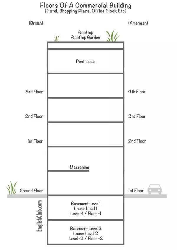 ´N¬O¦U°ê¹ï©ó¬Û¦P¼Ó¼h>>>¦³¤£¦PÁY¼g¡A½Ð±Ð¤F¦Ñ®v¤~ª¾¹D¦³³o¤@¦^¨Æ ¦¹½g¦³¸Ôz¡G°Ó场¨½经±`¬Ý见ªºB1¡AL1¡AGF层¡A这个¡§B¡¨¡§L¡¨¡§G¡¨¡§F¡¨¤À别«üªº¬Oþ个单词¡H ùرÁÙ¦³´£¨ì»´äªº¥Îªk ¡¶¥ªÃä¬O^°êºÙ©I¡A¥kÃä¬O¬ü°êºÙ©I B=Basement¡]¦a¤U«Ç¡^ B1¡BB2´N¬O¦a¤U¤@层¡A¦a¤U¤G层¡C L= Level¡]层¡A楼层¡^ L1¡BL2¤@¯ë«ü¤@楼¡A¤G楼¡A^¦¡¥Îªk视±¡úG¦Ó©w F=Floor(楼层¡^ F1¡AF2¬ü¦¡¥Îªk«ü¤@楼¡A¤G楼¡A^¦¡¥Îªk视±¡úG¦Ó©w P=Parking¡]车库/°±车场¡^ P1¡BP2¤@¯ë«ü¦a¤U¤@楼¡B¦a¤U¤G楼¡C G/GF=Ground (Floor) ^¦¡¥Îªk¡A«ü¦a±层¡A¤@楼¡C LG=Lower Groud¡]¦a¤U楼层¡^ UG=Upper Ground¡]¦a¤W楼层¡^ Mezzanine¡G夹层¡AM层 Metro¡]MTR¡^¡G¦a铁层 MU¤@¯ë«üMetro Upper¡]¦a铁层¤W±ªº¨º¤@层¡^ elevator ¡G¡]¬ü国ª½±è¡^lift ¡G¡]^国ª½±è¡^ escalator¡G§ß±è take an elevator ¡G·f电±è ¦¹¤å³¹©ó 2022-11-02 11:29 AM ³Q okx ½s¿è. |