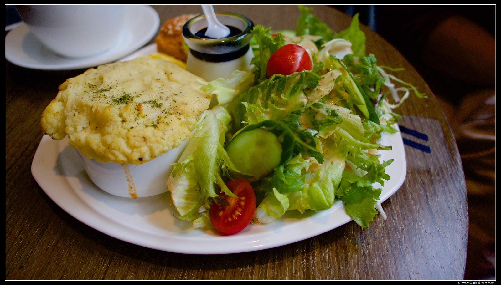 上樓看看Arthere Café 地址:台北市信義區忠孝東路五段165巷3弄6號 電話:02 8787 1782 完整版: 【台北Cafe地圖】:上樓看看Arthere Café 根據〖上樓看看Arthere Café〗官方粉絲頁說法,〖上樓看看Arthere Café〗已經在這裡七年,雖然知道永吉路30巷這一帶在這十年出現很多咖啡廳,但是一直都沒有注意到〖上樓看看Arthere Café〗這一家舒適寬敞的咖啡店。 〖上樓看看Arthere Café〗一樓 ![]() 〖上樓看看Arthere Café〗原本是老公寓,一樓扣除櫃檯和廁所,可提供座位的空間本來就不大,〖上樓看看Arthere Café〗竟然只擺設些許座位,讓客人有著非常舒適的空間。 這點非常非常讓人讚賞。 ![]() 〖上樓看看Arthere Café〗有兩個樓層,這也是讓我們很好奇的地方,這原來應該是兩層不同的公寓,〖上樓看看Arthere Café〗不僅打通兩層樓,做出樓梯,還擴大兩層之間的摟空範圍,這樣做雖然減少了二樓空間,卻讓一二樓有了呼吸的通道,兩層結合一個共同的生命,讓二樓更具魅力。 〖上樓看看Arthere Café〗二樓 ![]() 從二樓往下俯瞰一二樓之間的呼吸甬道,這比狹小樓梯間更加巧妙地結合兩個樓層。 ![]() 從二樓平視角度可以看到呼吸甬道改變二樓的氛圍,讓一二樓融合成可以自由流動的共同腔體。 在二樓〖上樓看看Arthere Café〗保持寬鬆空間的座位擺設風格,而這呼吸甬道似乎讓二樓更為明亮爽朗。 而且二樓個人座位區也是一樣地,每個座位都有插座和獨立檯燈。 ![]() 從門口庭院、一樓桌面擺設、一二樓樓梯,二樓座位,〖上樓看看Arthere Café〗都採取犧牲座位數量、增加整體舒暢感的風格,這一點非常非常吸引人。 〖上樓看看Arthere Café〗菜單算是非常豐盛,一般咖啡廳常見的義大利麵、燉飯、漢堡、早午餐、糕點幾乎備齊。 雖然〖上樓看看Arthere Café〗是以空間環境取勝,不過如此豐富的菜單讓許多來這裡開會工作看書的人方便許多。 〖上樓看看Arthere Café〗橘皮拿鐵 ![]() 不知道橘皮是指這個拉花?還是加了橘香?中規中矩的拉花,還蠻典雅的。 〖上樓看看Arthere Café〗夏威夷核果拿鐵 ![]() 這核果拿鐵似乎是灑一些夏威夷豆碎片,現在比較少在咖啡廳點拿鐵類的飲品,對於拉花裝飾比較免疫一點。 〖上樓看看Arthere Café〗主餐:貓王漢堡 ![]() 〖上樓看看Arthere Café〗漢堡類主餐有三種,這「貓王漢堡」是牛肉漢堡, 如同美式漢堡一般,都會鋪上滿滿的薯條,不過也鋪上許多生菜番茄,讓整個口感變清爽豐富。 個人很喜歡這「貓王漢堡」。 ![]() 原來以為這貓王牛肉漢堡是傳統牛肉餡餅,沒有想到這是牛排漢堡,真是太讓人驚喜,270元的價位算是物超所值。 牛排上鋪著幾片新鮮香蕉片,並淋上帶有花生醬的醬汁,口感甜了不少,不過還在可以接受的範圍,這應該很吸引女生試試牛肉漢堡吧?? 〖上樓看看Arthere Café〗牧羊人早午餐 ![]() 〖上樓看看Arthere Café〗早午餐選項很多,這次朋友點的是牧羊人早午餐,歐姆雷蛋、藍莓果醬布丁、千層麵包配著份量不小的生菜,很適合上班族。 用碗承著得不知道是起司酥皮?還是酥蛋? 朋友說明,碗裡面洋蔥牛絞肉,上面鋪的是薯泥,看起來頗好吃。 ![]() 〖上樓看看Arthere Café〗奶油培根義大利麵 ![]() 這比較像是傳統義大麵,不過擺盤非常漂亮。 〖上樓看看Arthere Café〗是視覺系的咖啡店,座位少、寬敞舒適,讓整體加分了非常多,而且餐點種類口感豐富、很適合上班族,假日也適合東區百貨公司的逛街遊客來這裡休息(咖啡種類反而不是非常多尤其是沒有提供單品咖啡,讓我小小訝異一下)。