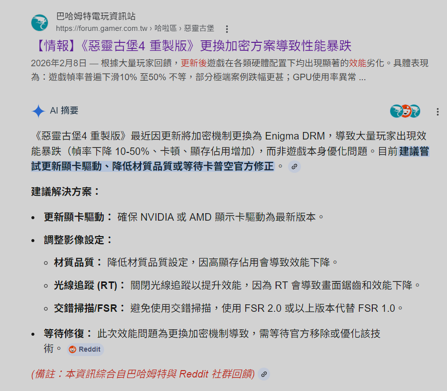 免費仔玩了免錢的RE4 那只會去找免錢的RE5.6.7.8 甚至最新的RE9也有破解手法 廠商拿掉防破解只是因為過了遊戲發售初期最熱賣的時間點 https://www.techbang.com/posts/1282...rformance-boost 傾聽玩家心聲,惡靈古堡4重製版移除爭議 DRM --- AI 摘要 惡靈古堡系列在 PC 平台上,幾乎所有主流作品(從早期到《惡靈古堡8:村莊》)均在發布後一段時間內被破解, 包含《惡靈古堡2》、《惡靈古堡3:重製版》、《惡靈古堡7》等,多數歸因於使用 Denuvo 防篡改技術遭到破解。 惡靈古堡系列被破解的主要作品: ● 正傳作品: 《惡靈古堡》、《惡靈古堡2》、《惡靈古堡3》、《惡靈古堡4》、《惡靈古堡5》、《惡靈古堡6》、《惡靈古堡7:生化危機》、《惡靈古堡8:村莊》。 ● 重製與衍生: 《惡靈古堡2:重製版》、《惡靈古堡3:重製版》、《惡靈古堡4:重製版》、《惡靈古堡:啟示錄》系列等。 此文章於 2026-03-18 10:58 AM 被 skap0091 編輯. |