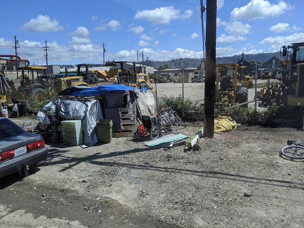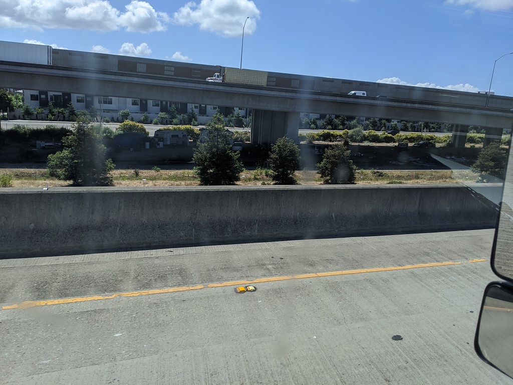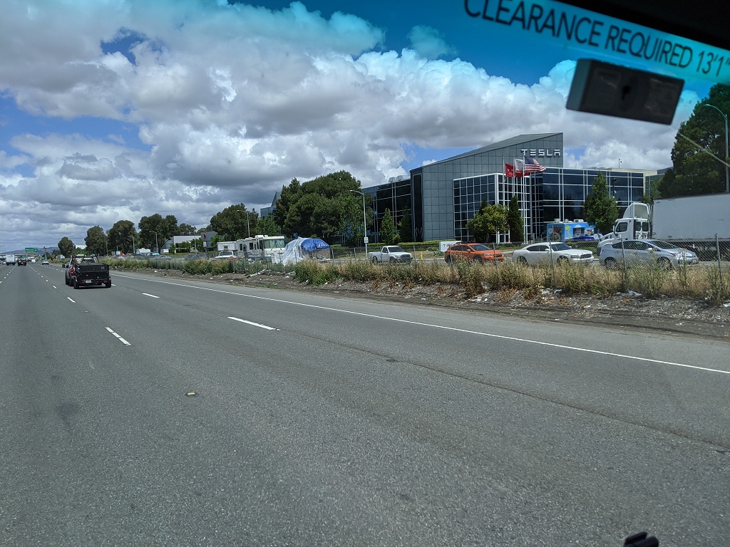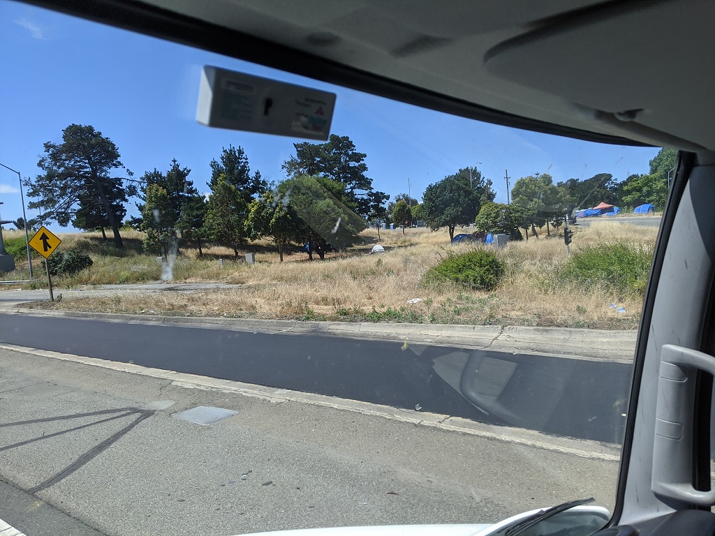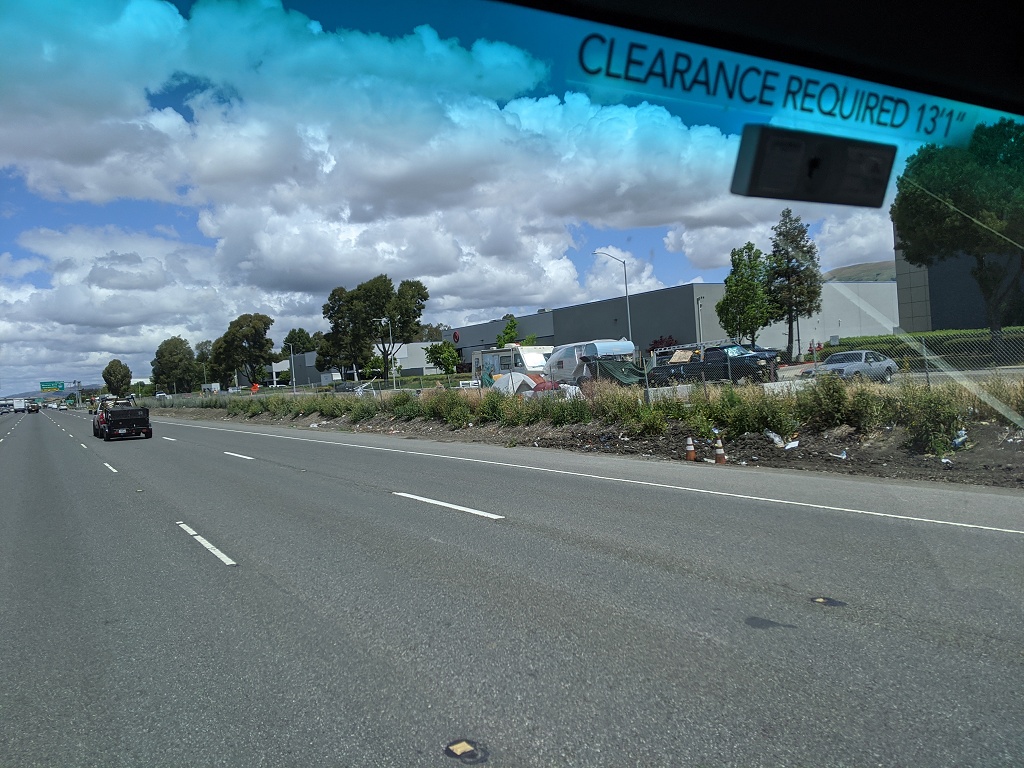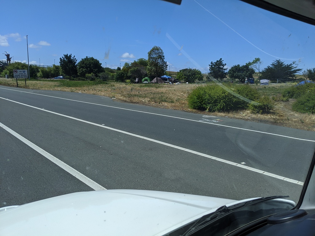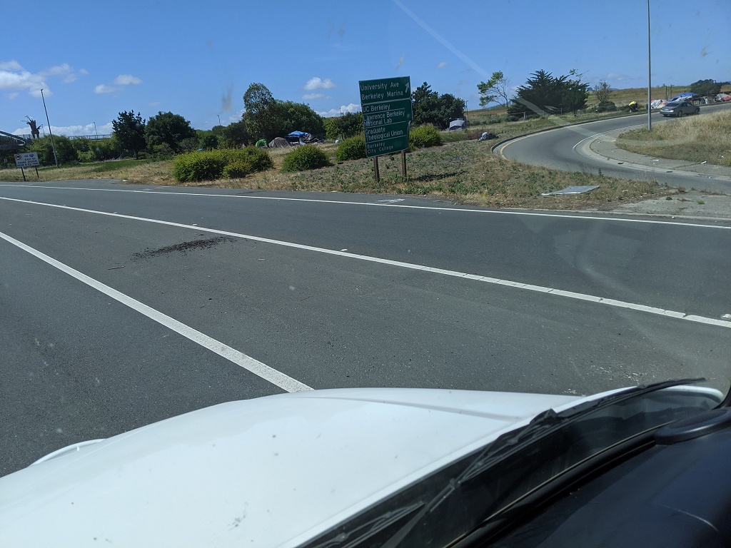 所有照片中高速公路旁的垃圾都是無家可歸的人, 拾荒, 然後東西被風吹得到處都是所造成的 自從舊金山周邊城鎮封城後, 警察就到處趕高速公路旁無家可歸的人, 一個月之前高速公路旁都是滿滿的帳篷, 現在被趕走 70~80% 的人. 兩周前我有停留奧克蘭, 警察是整個交流道封住, 一台大台垃圾車直接倒東西清理. 點擊圖片可以看原始圖片大小 高速公路休息站以車為家的人, 只要車子蓋布, 車裡面賽滿東西的都是無家可歸的人, 警察經常來趕但是我每天停在這休息都看到同樣的車 Google 地圖位置: http://maps.google.com/maps?q=38.151836,-122.217892 ![]() 特斯拉工廠附近, 路邊露營車為家的人 Google 地圖位置: http://maps.google.com/maps?q=37.459714,-121.924242 ![]() ![]() 柏克萊大學附近, I80 跟 University Ave 交接處, 高速公路旁的橋底下 Google 地圖位置: http://maps.google.com/maps?q=37.8666593,-122.3035884 ![]() ![]() ![]() 只是停在奧克蘭附近的一條小路上, 就有八組人馬露營車+帳篷 Google 地圖位置: http://maps.google.com/maps?q=37.87426,-122.3060513 ![]() ![]() ![]() 柏克萊大學附近, I80 跟 University Ave 交接處, 我走另一個方向. 這裡已經被警察趕走很多了, 之前這是滿滿的帳篷 Google 地圖位置: http://maps.google.com/maps?q=37.8678813,-122.304304 ![]() ![]() ![]() 近奧克蘭碼頭附近, 高速公路旁的橋底下 Google 地圖位置: http://maps.google.com/maps?q=37.8193482,-122.2949955 ![]() ![]() ![]() ![]() 近奧克蘭碼頭附近, 下面一條街都是帳篷 Google 地圖位置: http://maps.google.com/maps?q=37.8023512,-122.2853777 ![]()