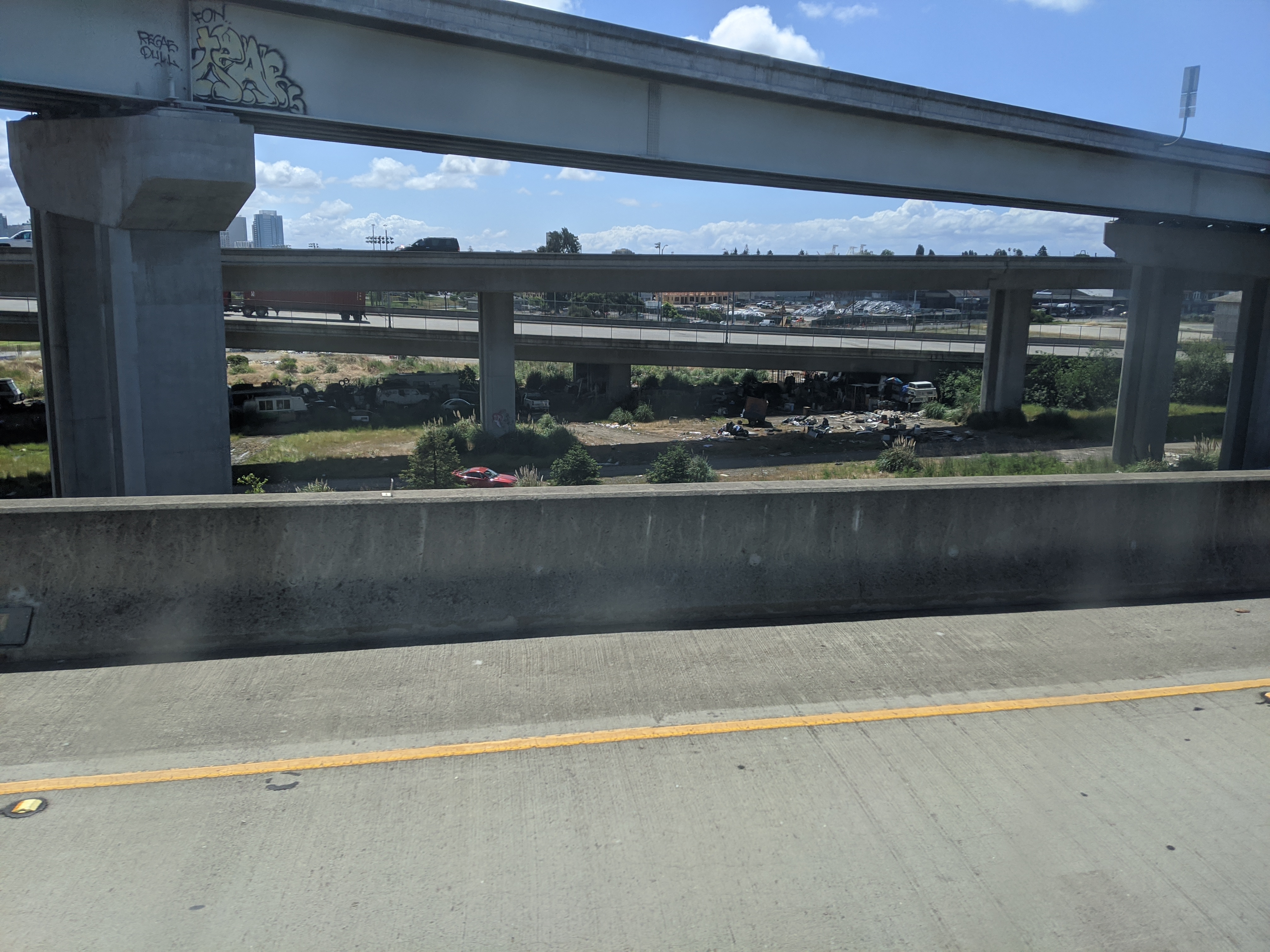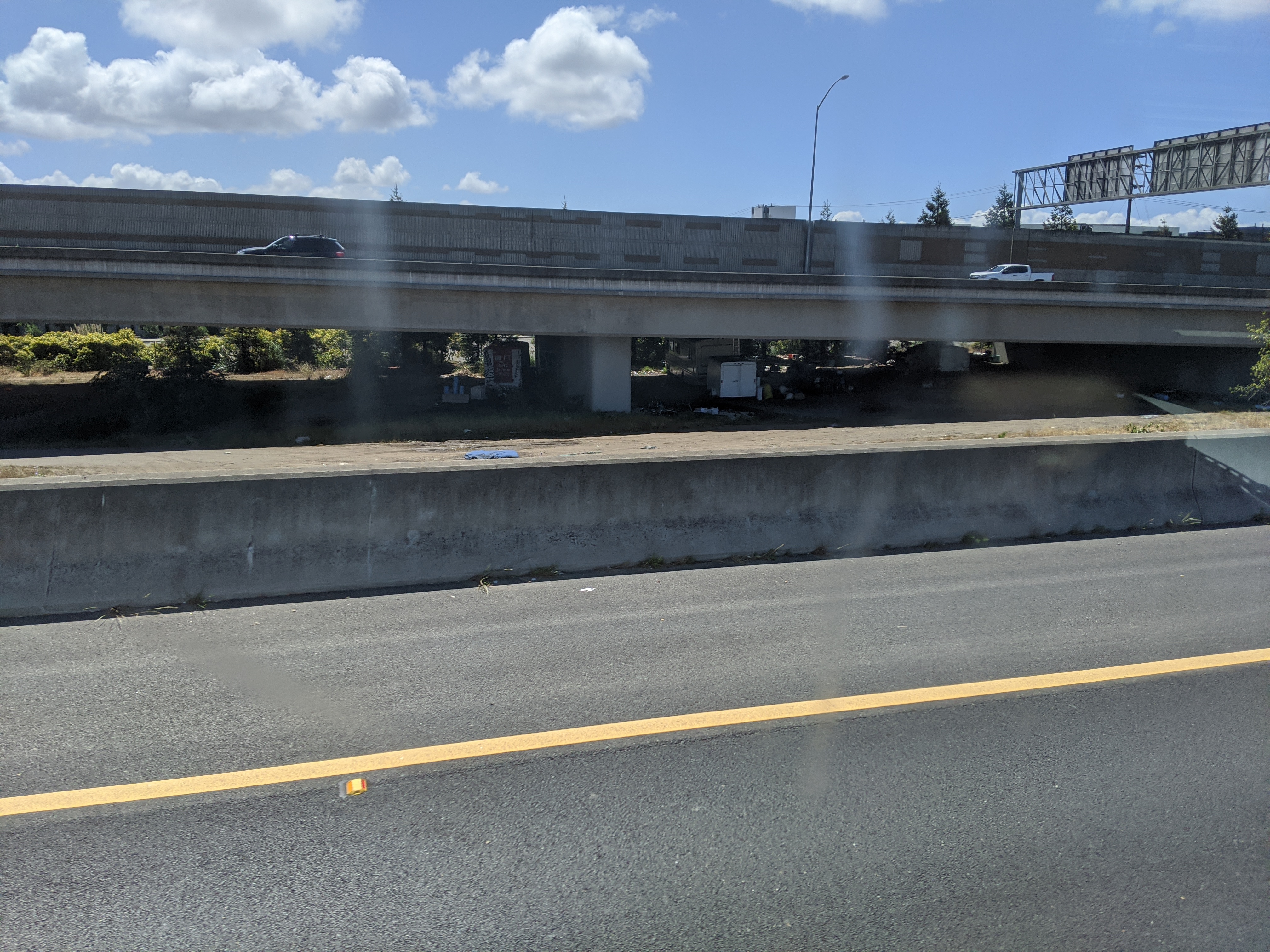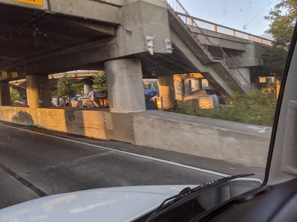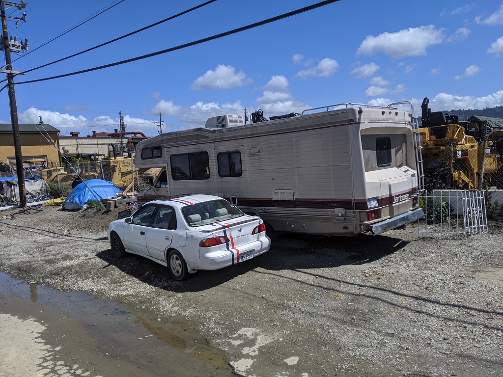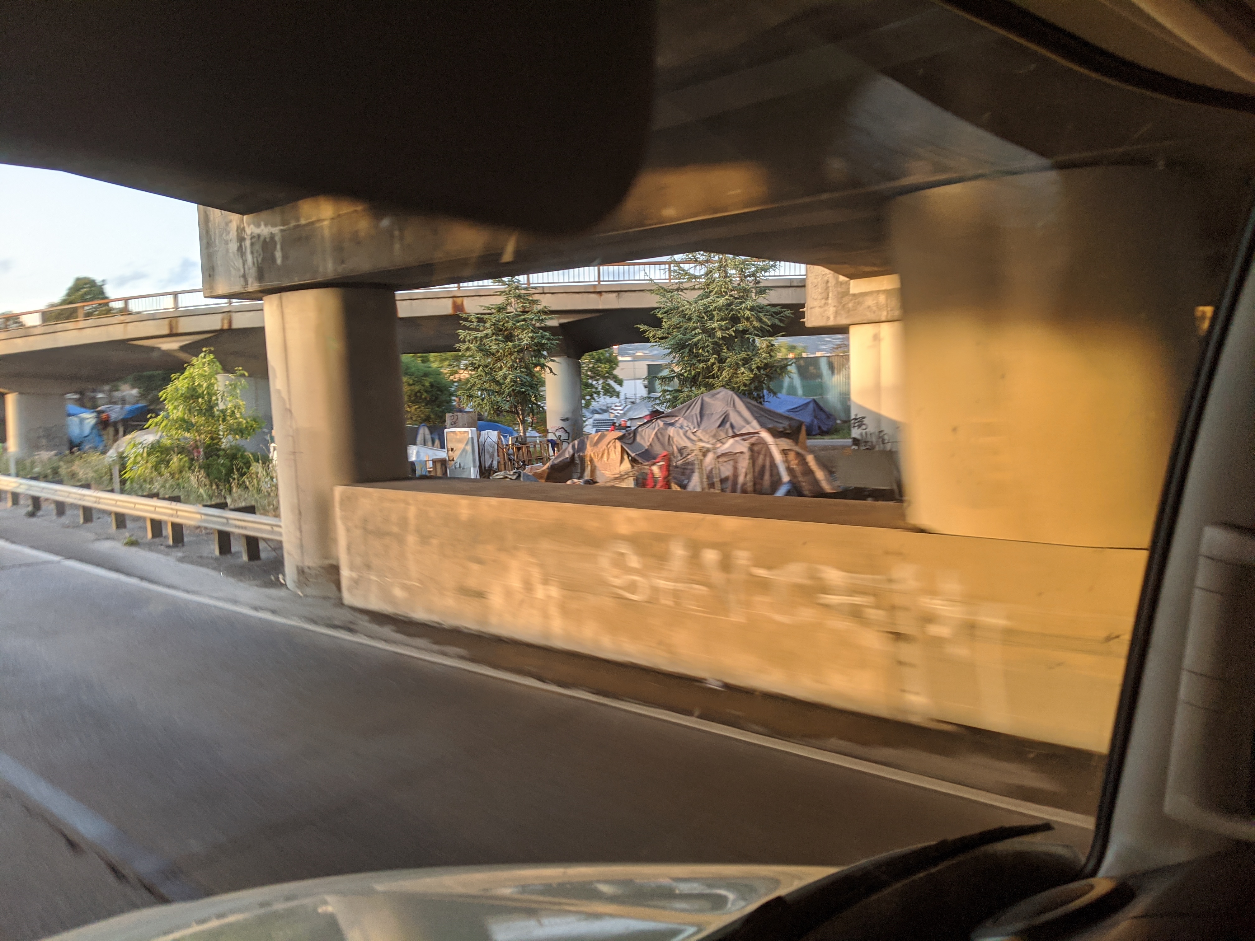 所有照片中高速公路旁的垃圾都是無家可歸的人, 拾荒, 然後東西被風吹得到處都是所造成的 自從舊金山周邊城鎮封城後, 警察就到處趕高速公路旁無家可歸的人, 一個月之前高速公路旁都是滿滿的帳篷, 現在被趕走 70~80% 的人. 兩周前我有停留奧克蘭, 警察是整個交流道封住, 一台大台垃圾車直接倒東西清理. 點擊圖片可以看原始圖片大小 高速公路休息站以車為家的人, 只要車子蓋布, 車裡面賽滿東西的都是無家可歸的人, 警察經常來趕但是我每天停在這休息都看到同樣的車 Google 地圖位置: http://maps.google.com/maps?q=38.151836,-122.217892 ![]() 特斯拉工廠附近, 路邊露營車為家的人 Google 地圖位置: http://maps.google.com/maps?q=37.459714,-121.924242 ![]() ![]() 柏克萊大學附近, I80 跟 University Ave 交接處, 高速公路旁的橋底下 Google 地圖位置: http://maps.google.com/maps?q=37.8666593,-122.3035884 ![]() ![]() ![]() 只是停在奧克蘭附近的一條小路上, 就有八組人馬露營車+帳篷 Google 地圖位置: http://maps.google.com/maps?q=37.87426,-122.3060513 ![]() ![]() ![]() 柏克萊大學附近, I80 跟 University Ave 交接處, 我走另一個方向. 這裡已經被警察趕走很多了, 之前這是滿滿的帳篷 Google 地圖位置: http://maps.google.com/maps?q=37.8678813,-122.304304 ![]() ![]() ![]() 近奧克蘭碼頭附近, 高速公路旁的橋底下 Google 地圖位置: http://maps.google.com/maps?q=37.8193482,-122.2949955 ![]() ![]() ![]() ![]() 近奧克蘭碼頭附近, 下面一條街都是帳篷 Google 地圖位置: http://maps.google.com/maps?q=37.8023512,-122.2853777 ![]()