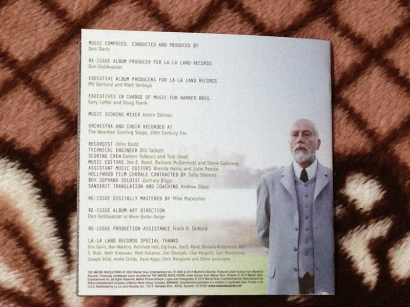 The Matrix Revolutions Expanded Archival Collection(2CD, Don Davis) ![]() 拉拉島發行的駭客任務第三集完整版配樂 三部曲到齊!?第一集只有Deluxe,還沒發Expanded,可惜。不過,拉拉島的華納計畫,怎麼第三集就沒有用了?結果讓二、三的封面設計長的不一樣。 老樣子,這次三張CD,拉拉島的兩張全滅。上面那個是Matrix的,齒雖沒斷,但整個托盤斷了。下面這個是冷血奇兵的,齒一樣斷一半,慘...。 在這之前,其實一直在猶豫是不是要收二三集的商業版,但是二三集商業版的內容實在讓我搖頭,收錄的配樂相當沒有誠意。結果沒想到拉拉島會發行完整版,二話不說立刻收。 現在唯一的遺憾就第一集短期內很難發行完整版,湊不成完整的三部曲。 當年在看駭客任務時,其實沒特別去注意配樂,後來陸續試聽了三部曲配樂後才確定列入必收的項目。駭客任務的配樂,特別是第一集,乍聽之下會以為是電子配樂,但其實是不折不扣的管弦樂,用管絃去模仿電子世界的數位感是相當有趣的一種體驗。 實際上,第二集才出現電子樂。駭客三部曲的配樂風格都不太一樣。第一集是用管弦模仿電子的數位感,第二集則混入了電子樂的高速節奏趣味,第三集則是氣勢浩大管弦決戰史詩。