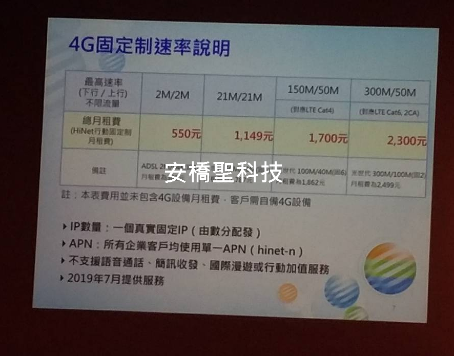 完全不一樣的東西,這串說的合約內容是移動式4G 你接到的電話是固定制4G,顧名思義就是能配固定實體IP的行動網路 主要是應用在ADSL/VDSL拉不到的地方但是有移動訊號以及實體IP需求的狀況 這種固定式4G費率就很像ADSL/VDSL,比一般我們使用的4G貴太多了 所以中華電信並沒有打自己臉 ![]() |