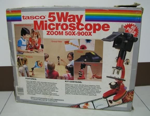 好像是受電視"兒童天地"的影響... 每個高年級小孩都人手一架,東看看西看看 有誰記得的嗎?[/QUOTE] 有,我記得。那時我差不多小學4~5年級左右。 那時連書局(當時書局是小朋友的寶庫,舉凡各種當季玩具,模型,鞭炮,玩具槍,小寵物...等,還有擺一桶一桶的便宜零食)也有賣顯微鏡,一台約3∼400元,整台幾乎塑膠製,連鏡頭管也是塑膠烤金屬漆的,根本像玩具一樣。 我都拿來看螞蟻,蚊子...等蟲類。 |
