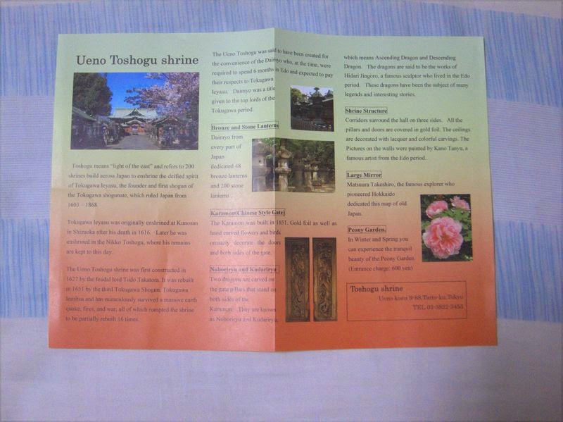時間15:35,抵達上野公園。 ![]() 大致上是從這個方向出來的。 ![]() 由此進入上野公園。 ![]() 公園入口處的地圖。運氣不錯,我從車站出來的地點離要去的目標很近,要去的目標有三。不忍池、弁財天和稍遠的東照宮。 ![]() 另一個地圖。在地圖上看到了附近有西鄉隆盛的像,想說就順路去看看,可是到了那附近卻甚麼也沒看到,加上有行程要走,西鄉隆盛像也不是非看不可的,所以就繼續往不忍池方向前進。 往不忍池的小階梯。 ![]() 不忍池分為兩區,弁財天這邊的是像這樣,滿滿的荷葉。 ![]() 往弁財天的這段路不長,但可以注意到兩旁有些攤位。看來似乎昨晚有擺攤的樣子,還是今晚也有擺攤? ![]() 不忍池的石碑。 ![]() 德川家康的眼鏡石碑。 ![]() 旁邊還有很多這類的紀念石碑。 ![]() 弁財天,這邊的外國人蠻多的。 ![]() 豐太閤護持。 ![]() 弁財天進不去,只能從外面觀望,所以就週邊走走拍拍。 ![]() 這裡的荷葉真是有夠密的。 ![]() 池裡有魚,再過去一點的地方還有烏龜。 ![]() 往不忍池後面前進的路上都是這樣被荷葉包圍著的感覺。 ![]() 不忍池的後半到了。 ![]() 這裡就沒有荷葉,而且有船可搭,不過大概是天氣太熱,沒半個人有興致下去玩。 上野公園其實就是一個保存得比較好的一個大眾公園,可惜這天來得比較晚而且又熱,加上還要去東照宮,所以不忍池看完就準備往東照宮前進,公園內的其他地方就沒有時間去逛了。 時間是15:50。 下午-往東照宮途中 根據Google Map的指示,繼續往前走,離開不忍池,走不忍通り,從另一條路再繞回公園,可接上往東照宮的路。 然而,Google Map的指示缺了一個重要訊息沒有記錄到。在上野公園中有上野動物園在,分為東西兩園區。而Google Map指示的路線是要我穿越動物園的西園,再切回公園中往東照宮的路線。 ![]() 可是,我去的這天剛好動物園休園,所以,往西園的路線一律不通,通通關閉了。而我是在走到不忍通り的西園路口才看到動物園休園的消息,走了快500米。其實要走回頭,也不是不行。只是,既然都走到這裡了,不如就當作意外的路線,四處逛逛,看看有沒有其他路線可以走。 上野動物園 ![]() 沿著公園外圍繼續往前走,來到一個岔路口,發現這裡有間似乎是有名的溫泉旅館。 水月ホテル鴎外荘 森鷗外 ![]() 在岔路往右走可以切入東西園之間的道路,似乎能接上回到公園的路線。不過走這條路時要小心,因為左側沒有人行道。我一開始想說盡量走在靠公園側,到時候如果遇到有路可以進入公園的話,就不用擔心附近剛好沒有斑馬線可以過了。 可是這條路因為左側一開始就像這樣,還是有些人會去走,但越往裡面走就會發現越來越危險,不僅沒有容納可以步行的空間,而且還有彎道,等於是要走在馬路上,非常危險。所以,我走到一半就回頭,找斑馬線過到對面走人行道繼續前進。 ![]() 沿著這條路走了一段距離後來到一個石鳥居下,石鳥居後方是一個有點長的石階。依據Google Map的資料,應該是可以走回公園裡沒錯。因此,就試著走走看了。 至此,步行距離約1公里,時間是16:05。 下午-上野東照宮 沿著路走,意外來到這個鳥居下。 鳥居後方是一段階梯,不知通往何處,但應該是往公園內沒錯。 ![]() 登上階梯後看到的是這幅景象。心裡想著...來對地方了。 ![]() 然後就看到東照宮的告示牌。根據Google Map的顯示資料來看,我應該是從側邊走上來東照宮的。 ![]() 東照宮佔地不大,直接就可以看到本殿了。 ![]() ![]() 絵馬。 ![]() 古井。 ![]() 這裡人煙稀少,左邊有一個只能容納一名神職人員(巫女裝)的服務台。在這附近停留時,發現會來到這裡的幾乎都是外國觀光客。 ![]() 兩邊擺滿了石燈籠。 ![]() 這邊也是一堆石燈籠。這裡晚上的氣氛一定很特別。 ![]() 根據告示牌上的介紹,東照宮是採用唐式建築風格所設計的神社,創建年分是1627年,已列入世界文化遺產。 本來在外面拍完照,買了幾個御守當紀念品後,看到入內要付錢,有點猶豫。對了,這次在東照宮參拜,我確實有做完完整的流程。而且這裡人少,可以很悠閒地慢慢洗手,涼快一下,然後在剛剛的金色大門前慢慢地參拜。 中間還遇到一群外國人,應該是其他地方來的,因為他們的英文口音很陌生,似乎是想問怎麼參拜。考慮了一下,本來想回答,但他們似乎又不想問了,就又自己離開了。 後來想想,都已經走了這麼久才來到這裡,區區500¥的參觀費就花下去吧∼ ![]() 到左邊的神職人員服務櫃台付完錢後就可以拿到拝觀券和英文介紹。不過,當時應該問一下有沒有日文版的介紹才對。 ![]() 通過神職人員的服務台後,走進左邊的小路,沿路也是滿滿的石燈籠。因為正門是關閉的,無法進出,要進出得從側門小路進去。 ![]() 小路的末端有一間狸貓神社。 ![]() 由此進入神社。 ![]() 現在的神社是由德川家光在1651年所改建的,採用唐式建築風格,整棟建築不只是金碧輝煌而已,而且色彩鮮豔、斑斕,與一般的日式神社相當不一樣。 ![]() 整個建築都被欄杆圍住,無法靠近。此外,屋簷下還架有網子,應該是為了保護簷下的雕刻。 ![]() ![]() 根據介紹,本殿內的看頭更驚人,可惜無法入內參觀。 ![]() 本殿的正門。 ![]() 連大門的裡側都是封閉的,不能隨意靠近。 ![]() 牆上有色彩鮮艷的雕刻。 ![]() ![]() ![]() 感覺上,東照宮的管理人員似乎不多,幾乎沒看到甚麼管理人員在走動。而且這裡環境又很僻靜,給人一種相當隆重的肅穆感