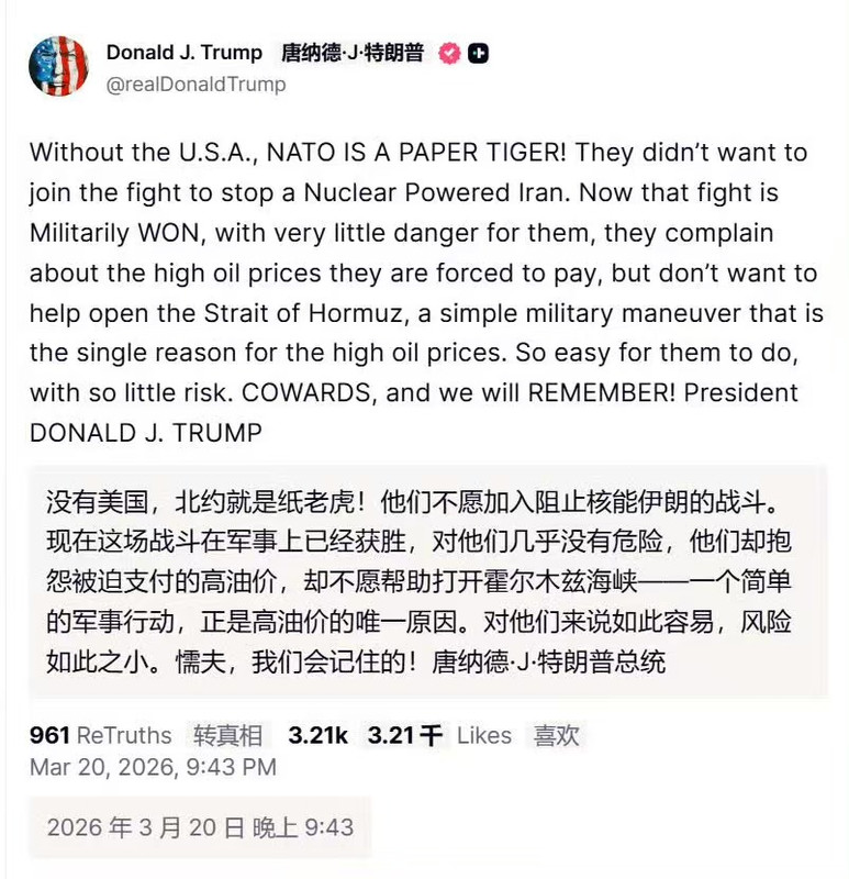 其實他的作法很簡單,如果盟國願意有難同當,就能確保有福同享,而且在美以聯軍每天不間斷的狂轟爛炸之下,現在派軍艦出來護航,需要應付的風險已經小很多了。要是連這一丁點都不願付出,那你們在當地就自求多福了。 基本上就是一次忠誠考驗。 ![]()