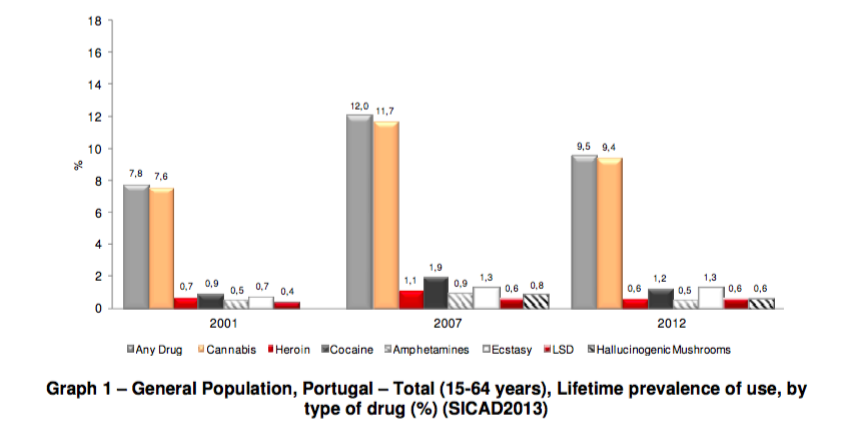 從葡萄牙整體人口(15-64歲)來說,終身有服用過毒品的比例,從2001年的7.8%,到2007年成為12%,到2012年成為9.5%,雖然2012年較2007年稍降,但還是比實施除罪化時2001年的7.8%高出不少。 另一張是青年人口(15-34歲)的終身毒品使用率,也可以看出2001年12.6%,到2007年17.4%,到2012年14.5%,實施除罪化後整理用毒人口還是成長。 美國白宮藥物管理局也指出,葡萄牙案例的限制在於:1. 支持的證據不夠顯著; 2. 沒有考量其他可能的變因; 3. 刻意忽略反向的數據趨勢; 4. 用毒減少的宣稱沒有決定性證據; 5. 方法論限制 :unbelief: :unbelief: :unbelief: |