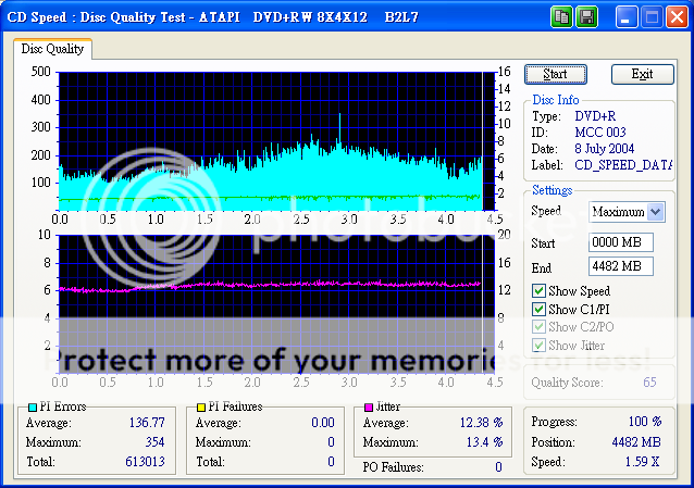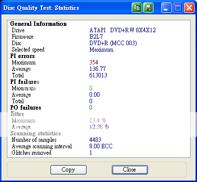前輩說的對 好片不能只看染料(剛也測了Maxmax DVD+R GSC502染,分數是100分滿分) 我看還是把他拿來專門備份影像檔好了 嗯...看圖吧 ![]() |