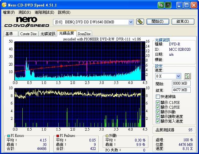一次是用Clone2DVD RipD9 to D5 @12x結果片子掛, 剛剛試用 DVD Decrypter 3.5.4.0 12x 燒,測試圖如下。 等等再測8x看看。 ![]() |