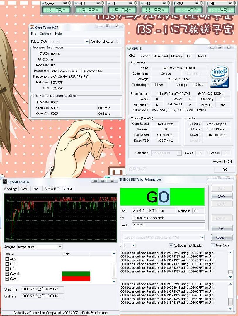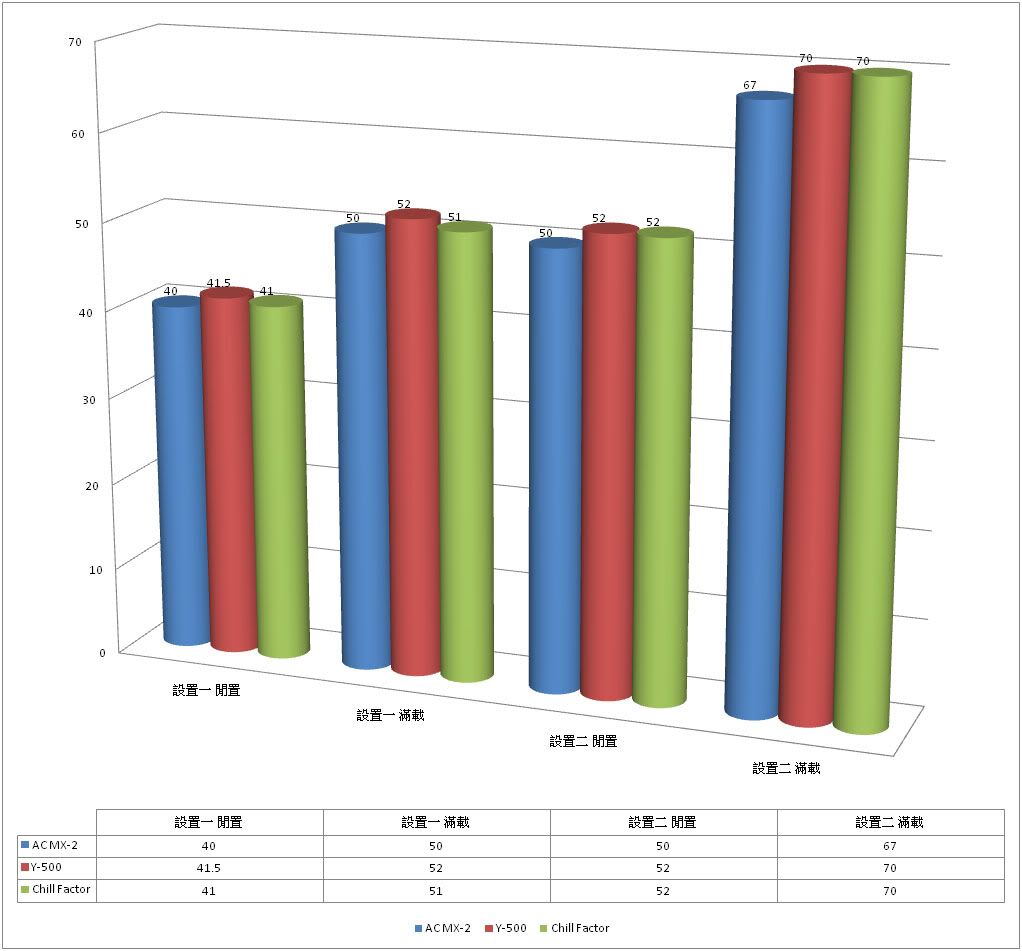 溫度=40 ![]() AC MX-2 CPU=334*6or8(EIST) 1.1000v (C1E開啟) 燒機 溫度=50 ![]() AC MX-2 CPU=440*8=3520MHz 1.3750v (C1E開啟) 待機 溫度=50 ![]() AC MX-2 CPU=440*8=3520MHz 1.3750v (C1E開啟) 燒機 溫度=67 ![]() 全部努力只為這一張表 ![]() 稍微離題 誠摯推薦SpeedFan這個軟體給在做測試的人 至少可以避免特別去抓低溫或高溫的嫌疑 而不喜歡本人所取溫度的人也可以依圖表自取溫度比較 當然 要做假的方式還有千百種啦(苦笑 回歸正題 室度是一個因素 接觸面也是一個因素 在本人這邊差這幾度 您在使用時可能差的更多 可能差的更少 但本人想它效能比Y-500好這點應該是無庸置疑的 而對於用量大的人Y-500 C/P值較高 用量小的人AS5 MX-2這類C/P值較高 不怕保固消失的玩家 某液態金屬為首選 這種清楚的產品定位應該是沒有爭議的 總結 效能外其他重要優點: 1.容易塗抹* 2.不導電具泛用性 3.不易裂化 "8"年才須重塗一次 4.免磨合期* (*=AS5所沒有的) 缺點: 沒有像AS5 3.5g版一樣的超小包裝版本 最後再告訴各位一個好消息 這東西正式上市後 AC散熱產品原本內附的MX-1 也會升級為MX-2 看到朋友有買AC產品就可以A一點過來用... 以上~~~ 下集預告! HR-09測試明天或後天出 敬請期待!!! |