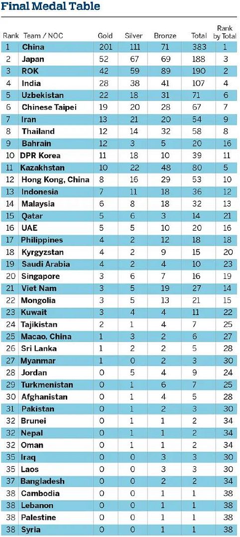 當然中國是“遙遙領先”... 縂獎牌數比第二第三的日韓加起來還多。 |