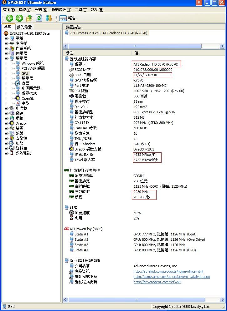 頻寬跟圖像填充速度,應該就是看當時的時脈來計算, bios刷不同的待機狀態下,時脈也不一樣, 自然數字也不一樣了.. |