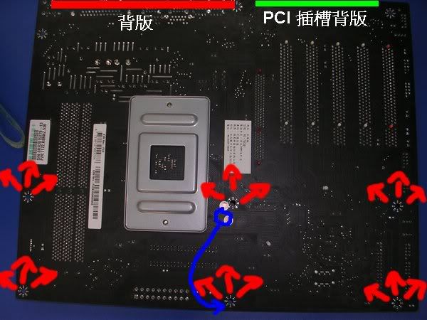 借你的圖改改 ![]() 銅柱會刮到主機版的方向只有三個, 一切方向以你第三張照片來說, 都是 10點鐘到 2點鐘方向範圍 原因是因為主機版放置方式先將主機版放入機殼, 再往背版的地方移動到位置上 也就是主機版從圖片往上擺, 銅柱位置則會是由上往下, 刮到的地方也就都是洞的上方或是左右 除非你的機殼沒有背版, 才可能過頭到洞的下方去..... 看你能不能盧.... 因為這是很基本的道理, 銅柱是刮不到洞的 6 點鐘方向的.. 除非你是中間最下面那個銅柱刮到的, 也就是我藍色圈圈的地方.. |