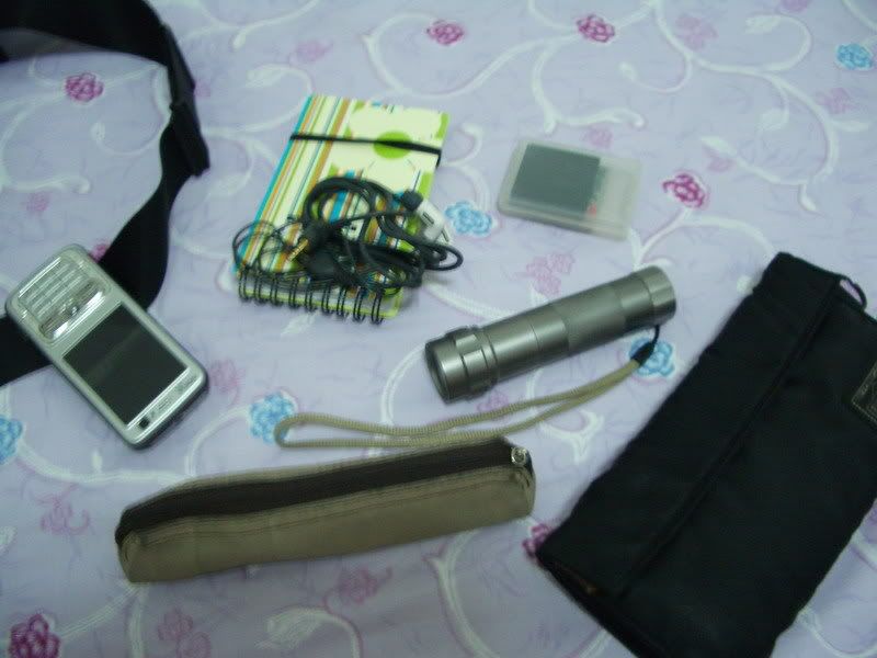 手機,MP3隨身聽,錢包,鑰匙,髮臘,紫草膏,排球用的風針。