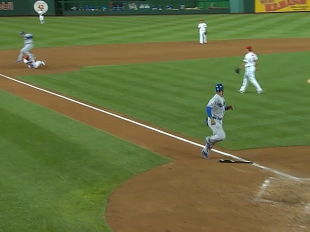 看了一下昨天的重播,大樹送回的第二分,明顯是裁判的誤判,第三人出局時,Kemp 離本壘板還好幾步之遙 ~