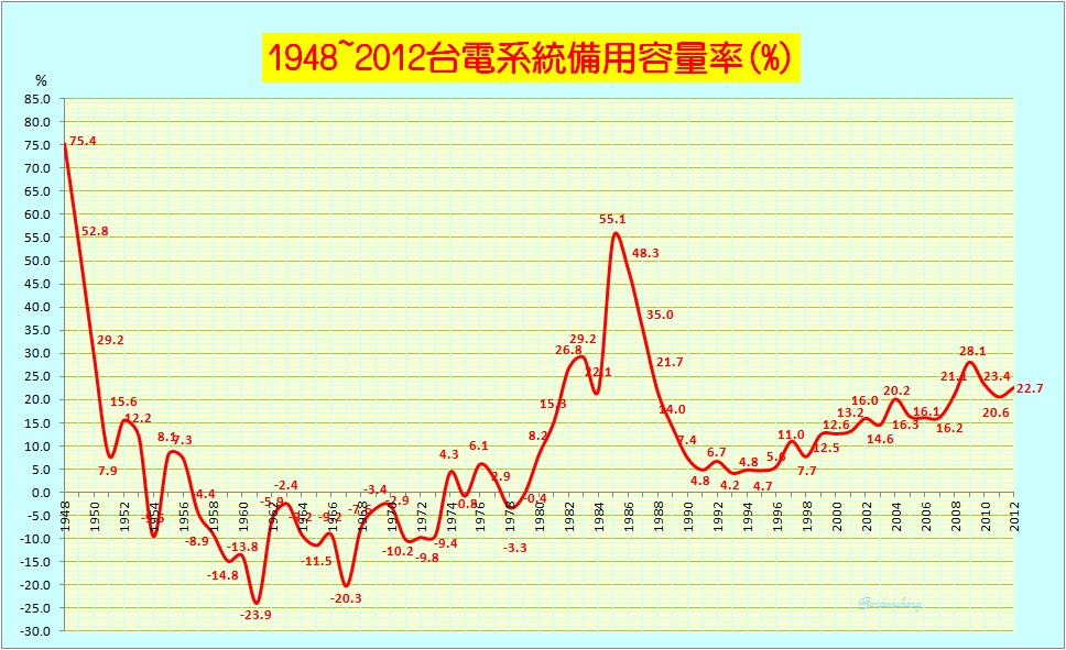 詳細的大家搞不清楚為什麼不說清楚,你台電明明是專業的電力單位,你應該有完整的電力需求圖表,電力缺口有多少?為什麼缺?以後你要怎麼補?講出來啊。你不講人家怎麼知道,就算不是全部的人知道總是會有熱心且學有專精的學者教授會整理。 但是台電永遠講不出來,因為事實就是台灣不缺電,錢都拿去蓋電廠了,台灣的備載電力一直增加,但是需求卻沒有跟著增加,有人早就整理出來了,就是下圖。 ![]() 圖表很清楚整個備載電力一直是上升的,你公司會不斷花錢去蓋多餘的產線? |