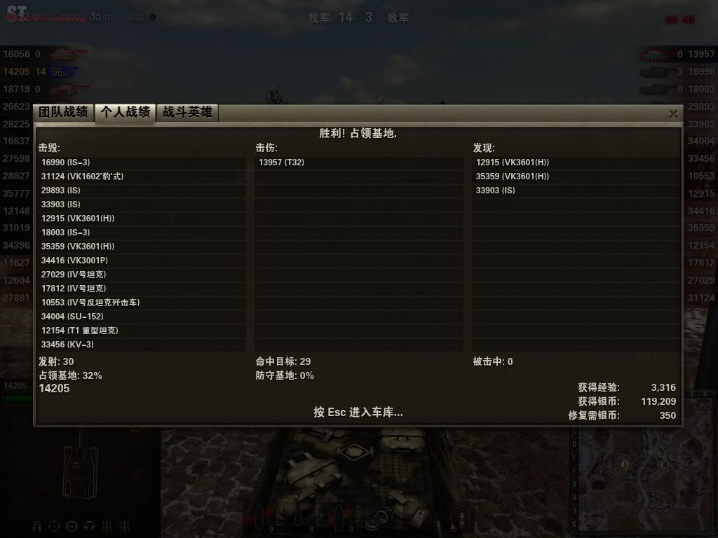 因為聽大家說要HARD RESET,我一場都帶15發金幣APCR,結果互K了大概五砲,我的t44往生,IS4剩下49%,在公頻跟我說,T44,我沒想到你能給我造成這樣的傷害. 說真的,我也沒想到. |