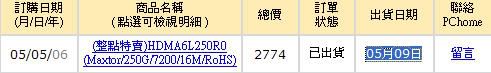 - - PCHOME賣Maxtor 250G 7200轉16M液態承軸 2777元