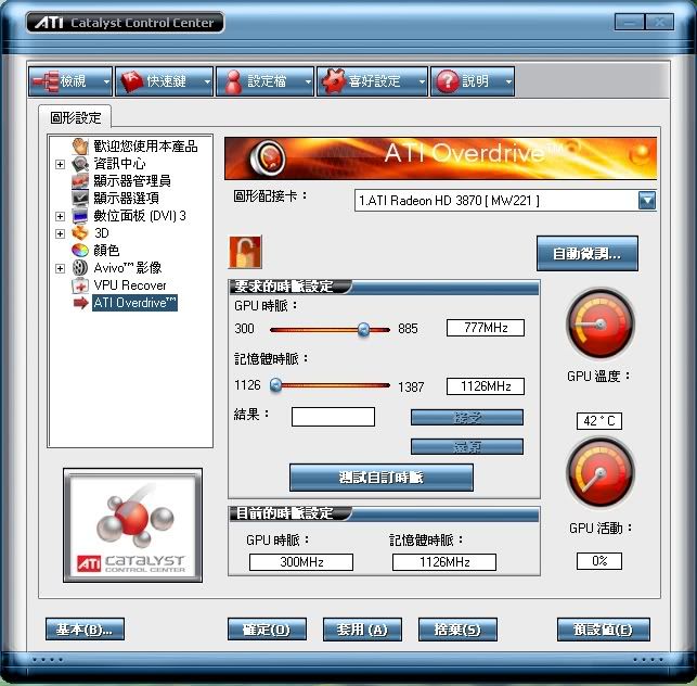 他的意思是說把花王的風扇定在25%去跑 而不是說預設是25% 不知道是不是這樣 還有一點,3870的風扇開到幾趴會感覺得出風扇聲? 而風扇定在幾趴不超頻的話溫度可以壓在85度左右呢? |