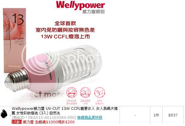 賣點為270度發光且又輕又小 之前曾出現在"滿額加價購"專區 一顆399入手 實際使用效果優於台達電及STANLEY的LED燈泡 光線分佈更加均勻 女性彩妝燈泡其實就是兒童護眼燈泡的進階版本 最大13W 同樣4000K色溫可供選擇 演色性感覺接近同廠牌的T5燈管 先前的"全館滿$1000現折$200"活動 平均一顆不到250入手 |