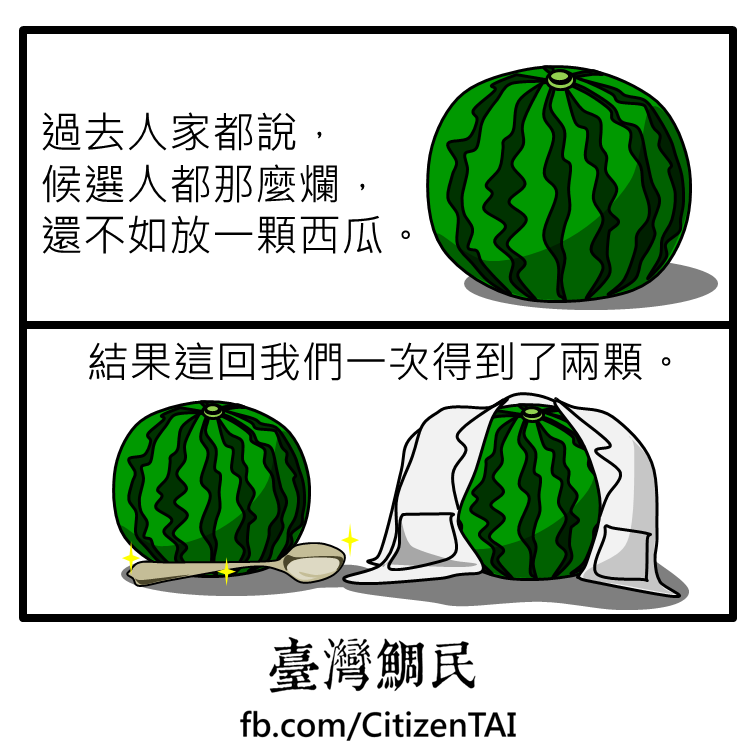 看到你轉貼的圖想到一件事很奇怪 ... 明明車輪黨很多事荒腔走板 , 也被許多人罵翻了 , 但每逢競選、不管對手是在野黨或素人 , 就是有人硬要扯兩個一樣爛 , 甚至鼓吹投廢票 ~ 反正不是鐵票藍、含淚投藍的 , 寧可弄成廢票或把對手弄臭、拿不到有效票就是了 !! |