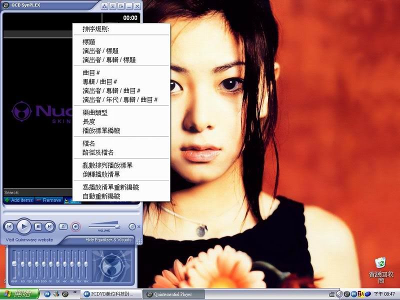 原本用foobar,自從買張創巨音效卡後,就用內附的撥放器了,感覺很棒