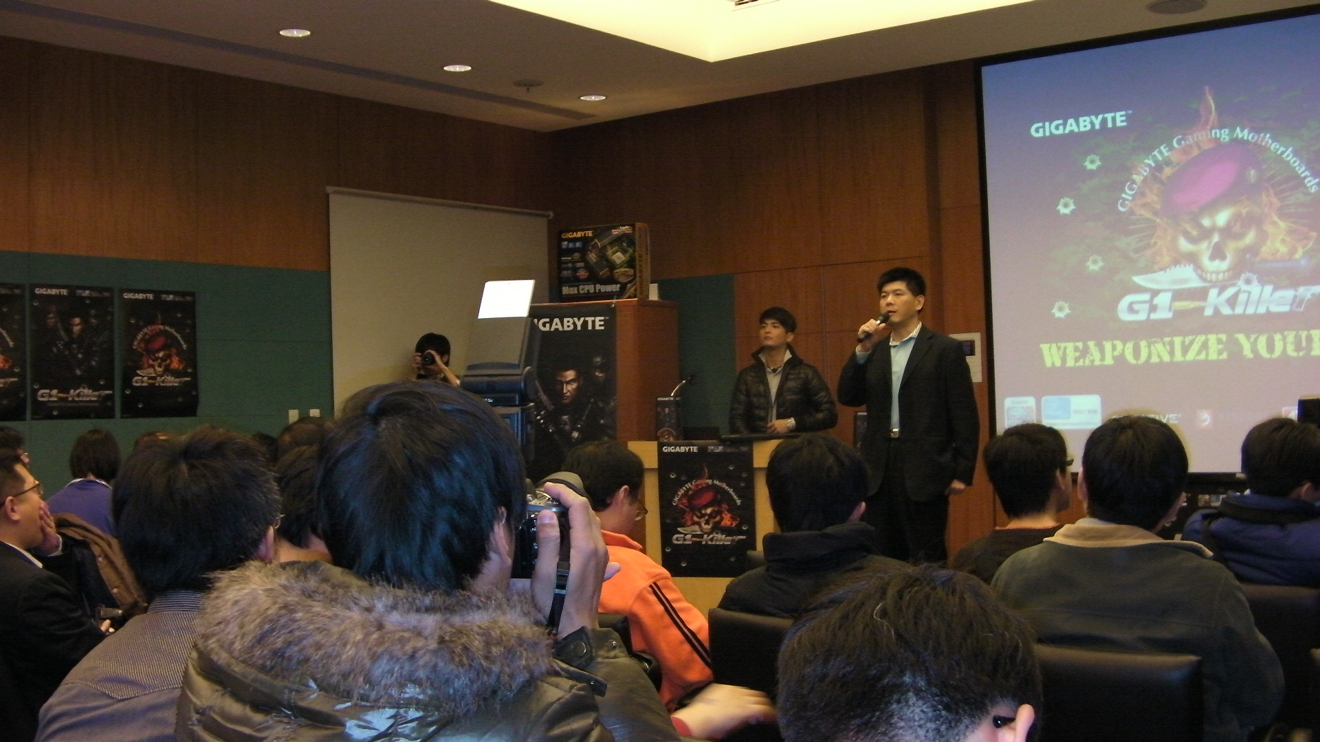 沒想到左前方鏡頭目標鎖定全場,應該是技嘉官方攝影師想拍這場盛況有多少人參加吧