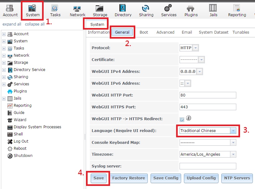 ¡¶ ¿ï¾Ü3.«±Ò¡Aº¡¤ß´Á«Ý¦aªï±µ¥þ·sªºFreeNAS¨t²Î¡C