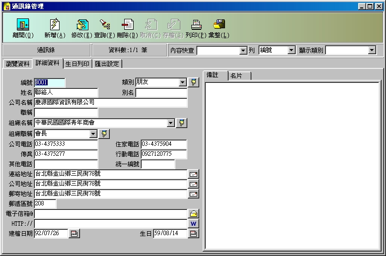 我匯入一些網路上找到的通訊錄軟體完全無法認出左邊的群組.... ![]() Flickr 上 p123323 的 contacts 會變成這樣 ![]() Flickr 上 p123323 的 contacts02 怎麼辦?有沒有可以匯入Wab或把Wab轉Vcard的軟體 ![]() |