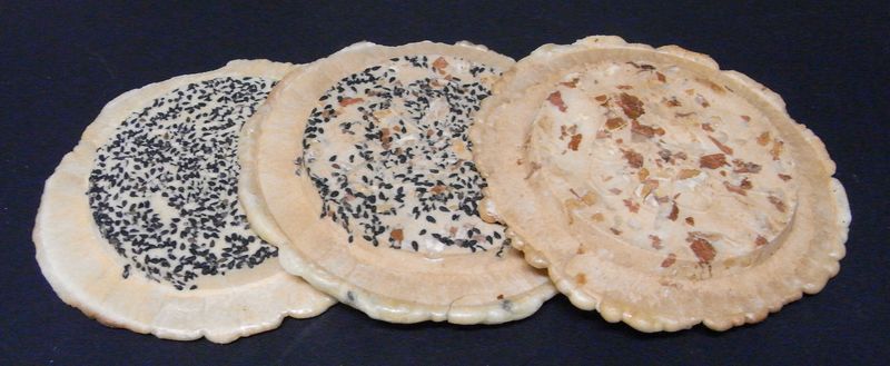 不像一般仙貝是鹹的,它是加芝麻或花生,帶一點點甜味,