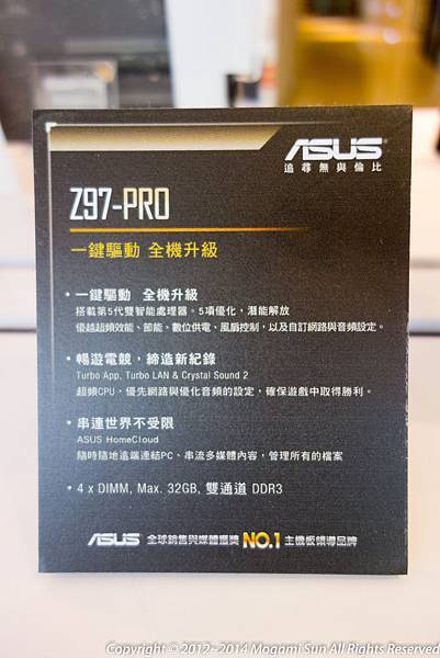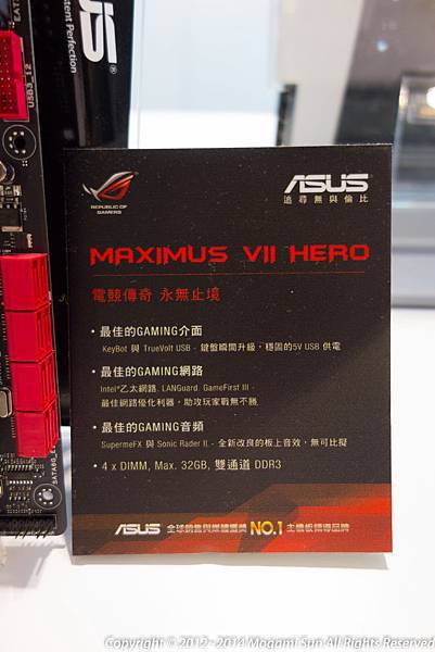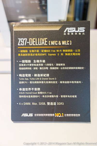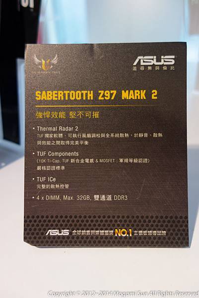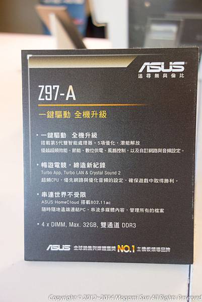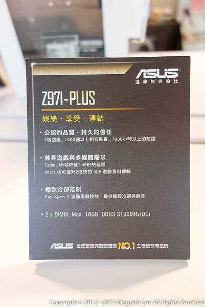 原來就是華碩總部啦,話說來過這麼多次,每次都忘記拍一下外觀,這次總算記得了。XD 進門之後首先看到的是這次活動鎖要展示的各項產的立牌 ![]() 左邊的是最近越來越紅的Tuf系列,右邊是平價親民的Channel系列。 ![]() ![]() 不過好像沒看到大當家的ROG系列?別急,等等就會出現啦。 相信看到這邊,很多人會說Z97有甚麼好介紹的,規格上是真的沒甚麼特別的,但是 Asus 硬是在主機板上推出了不少新功能呢。XD 進入會場後,就看到等等要上場 Demo 的產品啦, ![]() 如果是美型派的,可以考慮一下右邊的MX279美型機喔,他可是1920x1080的IPS機型喔~ ![]() ![]() 以下是Sabertooth Z97 Mark I 跟 ROG M7 Hero 的實裝機展示~ ![]() ![]() 因為來的早,活動還沒開始,先看看外面的產品展示區吧,剛剛沒看到的ROG立牌在這邊啦。XD ![]() 最先出現的是 M7 Hero ![]() ![]() ![]() 接著是新推出的 Ranger 系列 ![]() ![]() ![]() 最後出現的是傳統名將 Gene ![]() ![]() ![]() 這是新設計的 ROG 後擋板,有沒有發現哪邊不同啊,就是 PS2 接頭回來了啦。XD 除此之外,這次的 ROG 主機板有甚麼特色呢? 首先就來個全系列定位介紹,可以明顯看到新朋友 Ranger 就是與Hero接近的親民款 ROG。 ![]() 其中 Extreme 跟 Formula 要等到 ComputeX,所以這次只有新朋友 Ranger 跟 Gene 還有 Hero。 ![]() ![]() RoadMap ![]() 有發現這張圖要說甚麼嗎?就是主機板也要美型啦,整體造型越來越美的 ROG 。XD ![]() 這次的ROG還推出了新功能 KeyBot ,利用標準鍵盤的(不適用多媒體鍵盤)F1到F10,建立各項新功能, 讓沒有多媒體鍵盤的用戶,也能很方便的調整自己的PC,這邊特別強調,他是有一顆專用晶片燒在主機板上面喔。XD ![]() ![]() 常見的USB供電不足問題,這次也採用前後分離的方式,把供電分開,讓前後USB 3.0 都能有足夠的電力。! ![]() 一般 on Board 網路卡,常常會遇到干涉的問題,Asus 這次特別推出了有 ESD Guard 的網路卡,來確保網路傳輸的品質。! 左邊的是一般的網路卡,右邊的是有ESD Guard的網路卡,這應該是很明顯的差異了吧。XD ![]() 接下來的音效,既然會用ROG,相信不少人是拿來玩Game,所以這次特別在音效方面下了功夫。 ![]() 除了可以偵測你耳機的歐姆數,使耳機達到最佳效果外。 ![]() 還可以自定各種情境,及透過虛擬7.1聲道,可以讓你更加享受遊戲的感受喔。 ![]() ![]() 最後這個我還滿愛的,就是直接給你 RamDisk 功能,回想起我為了RamDisk 花錢買SuperSpeed的血淚歲月啊,這樣真的太親民了。 接著就是我很喜歡的 Tuf 系列,穩定、耐用的傳統風格,對於不喜歡常常換電腦的DIY玩家來說,是很棒的選擇啊。 沒有防護裝甲的 Mark II ![]() ![]() ![]() 有防護裝甲的 Mark I ![]() ![]() ![]() 新朋友獅鳩獸,裝甲版 ![]() ![]() ![]() 沒有防護裝甲的版本 ![]() ![]() ![]() 那這次的 Tuf 有甚麼特色呢? 這張要說的其實......就是支援了 SATA Express XD ![]() 這是新功能風扇反轉,目的是清灰塵,不過因為我沒測過,實際有多少效果,可能要測試才知道。 ![]() 下面這兩張就是 TUF 傳統的賣點,耐用、耐用、耐用,真的很耐用,都操不壞的,好討厭。XD ![]() ![]() 最後就是這次Z97的Tuf產品總表。 這邊是一般的Channel主機板,請大家隨意看看囉。 ![]() ![]() ![]() ![]() ![]() ![]() ![]() ![]() ![]() 這張要稍微講一下,他有配備 802.11ac 無限網卡喔,非常超值喔。 ![]() ![]() ![]() 這張則是有配備NFC跟WLC的 Deluxe,想要C/P值的話,就是選他囉。 ![]() ![]() ![]() 這是 Asus 新推出的 NFC Express 2,牌子上寫的 Wireless Charger 忘記拍了。XD ![]() ![]() 那這次的 Channel 系列就沒有特色了嗎? 當然不可能啦。XD 首先就是有支援 SATA Express ! 就算不是高階版本,一樣有支援 SATA Express 喔! ![]() 不管是插兩張 M.2 或是 HDD 或是 SSD 都可以喔。 ![]() ![]() 再來就是支援 ThunderBolt ![]() 下面這張是我沒拍到的 Wireless Charger...... ![]() 旁邊是另一家廠商 Seagate 的攤位,展出她們最新的儲存產品,其中 Seagate SSD 的控制器在新一代 SSD 中,算是表現不錯的,加上親民的價格,是可以考慮的喔。 ![]() ![]() ![]() ![]() ![]() 以上就是這次的 APFG 活動啦,謝謝觀賞。