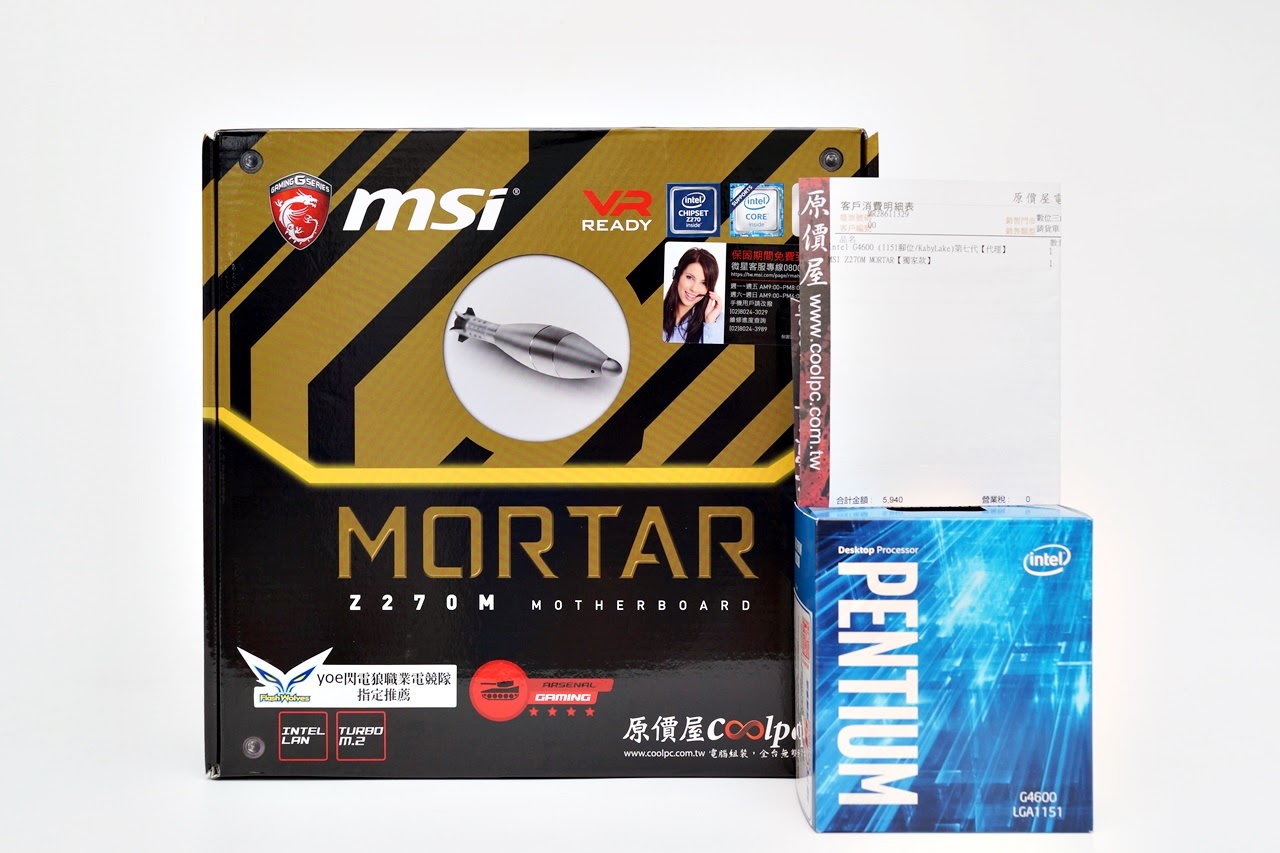 1.品名: Intel Pentium G4600+MSI Z270M MORTAR